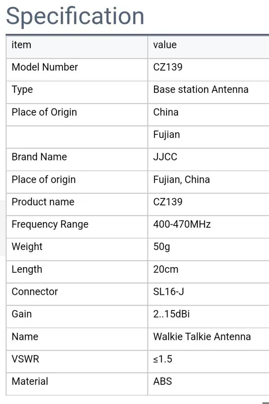 دارای کانکتور PL259 UHF-J ، آمپدانس 50 اهم، بیشترین توان برابر با 10وات،