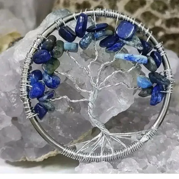 گردن آویز درخت زندگی سنگی لاجورد