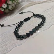 دستبند ترکیبی مهره حدید قلبی و گرد