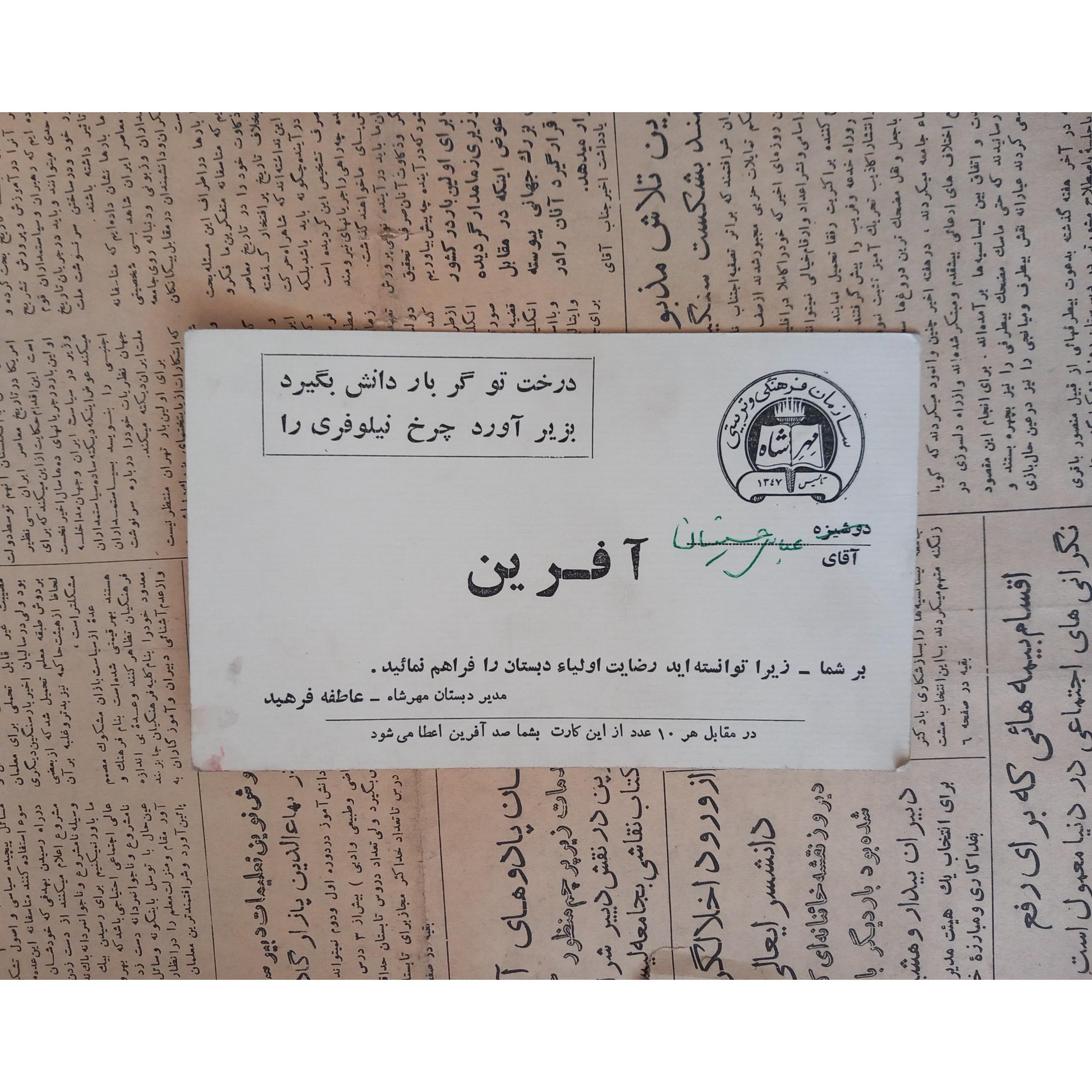 کارت آفرین . سازمان مهرشاه