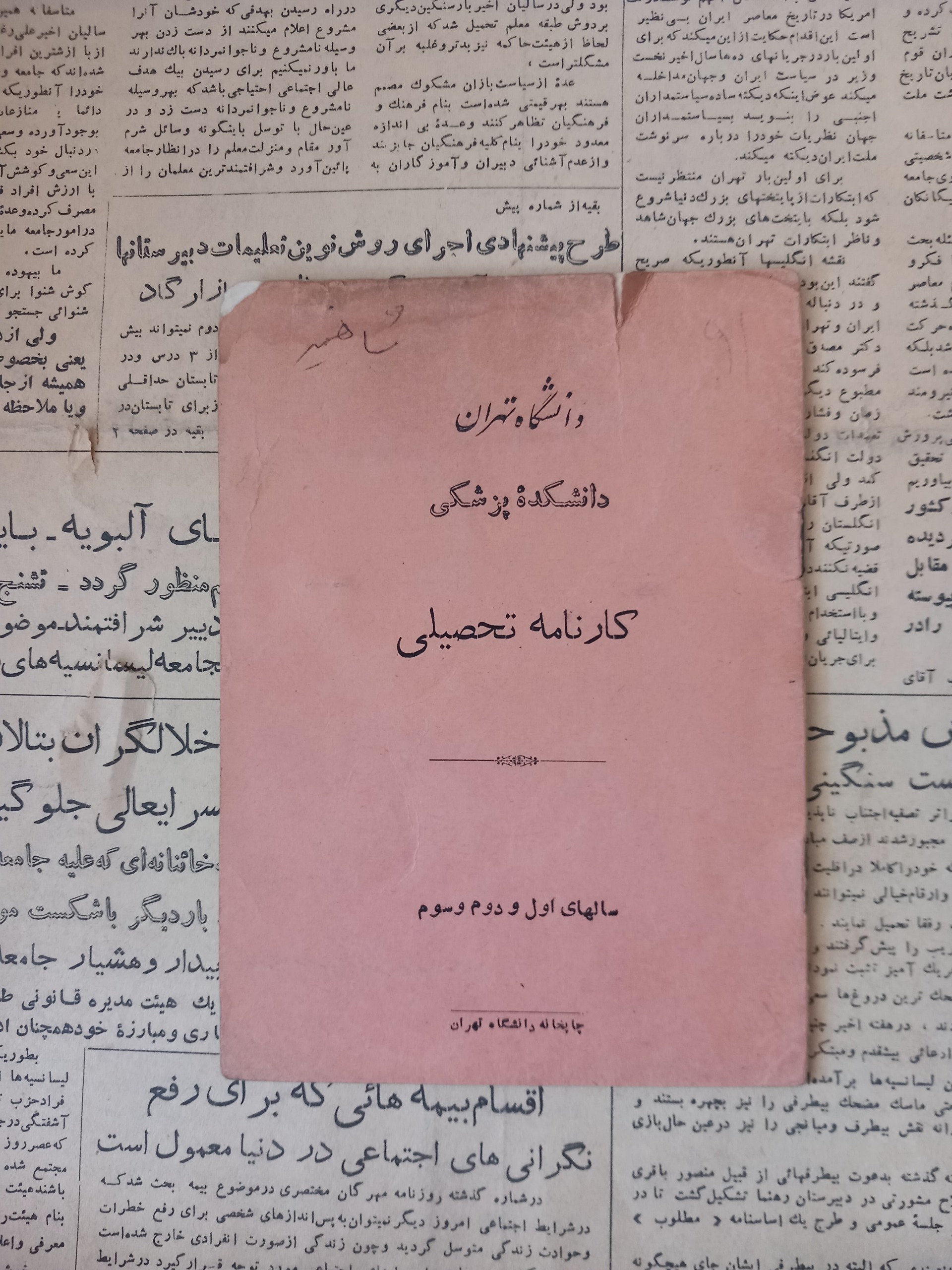 کارنامه تحصیلی دانشکده پزشکی .1344