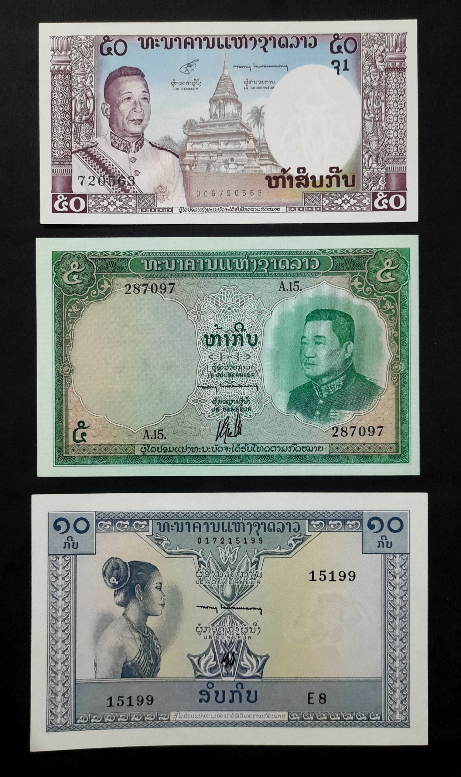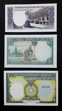 ست 3 برگ اسکناسهای زیبای لائوس