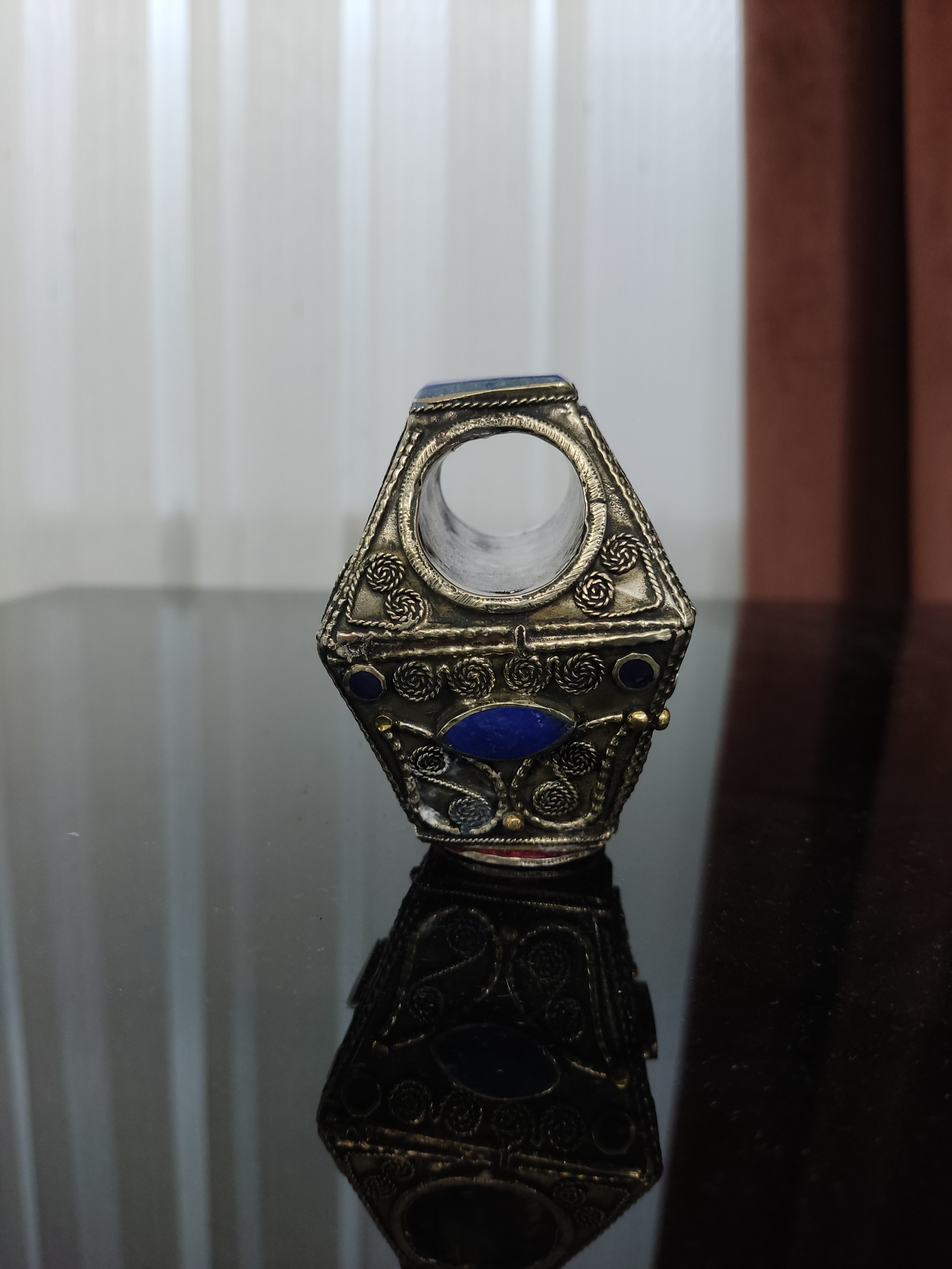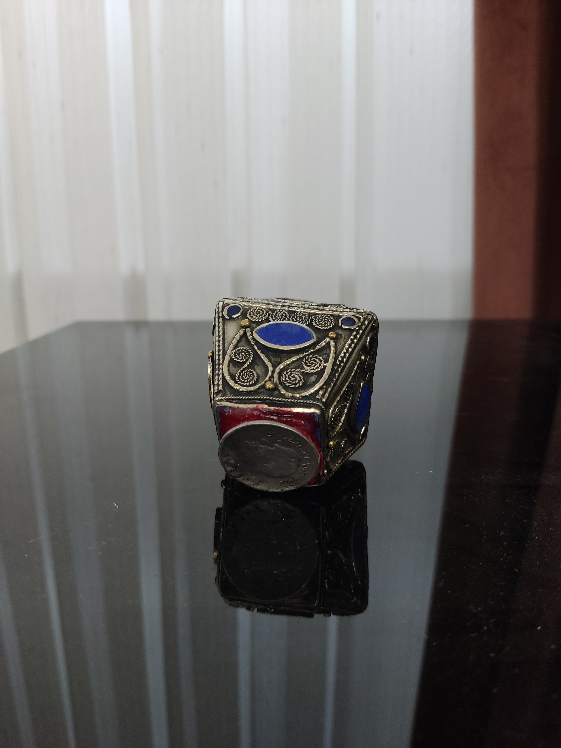 انگشتر غول پیکر آنتیک از جنس ورشو با سنگ های لاجورد با یک سکه محمدرضا شاه که روش چسبانده شده به وزن 187 گرم مطابق تصویر خواهشمندم از دیگر کالاهای اینجانب دیدن فرمایید.