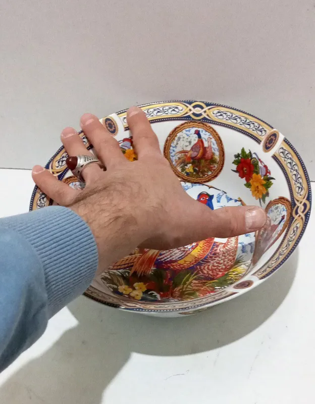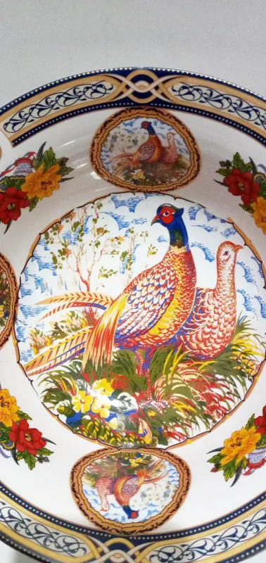 کاسه بزرگ قدیمی قطر 23 سانتی اصل ژاپن بدون لپری و شکستگی بکر طرح طاووس و گل واقعا تمیز و کلکسیونی