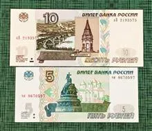 2 برگ اسکناس بانکی 5 و 10 روبل روسیه 1997 ارزشمند