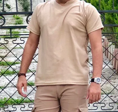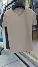 تیشرت یقه کوبایی کرمی خنک تابستانی