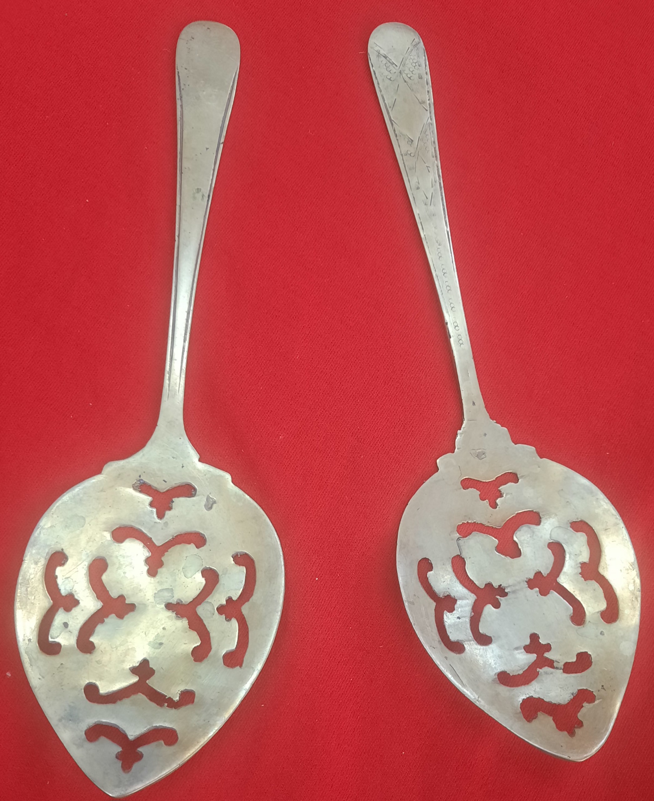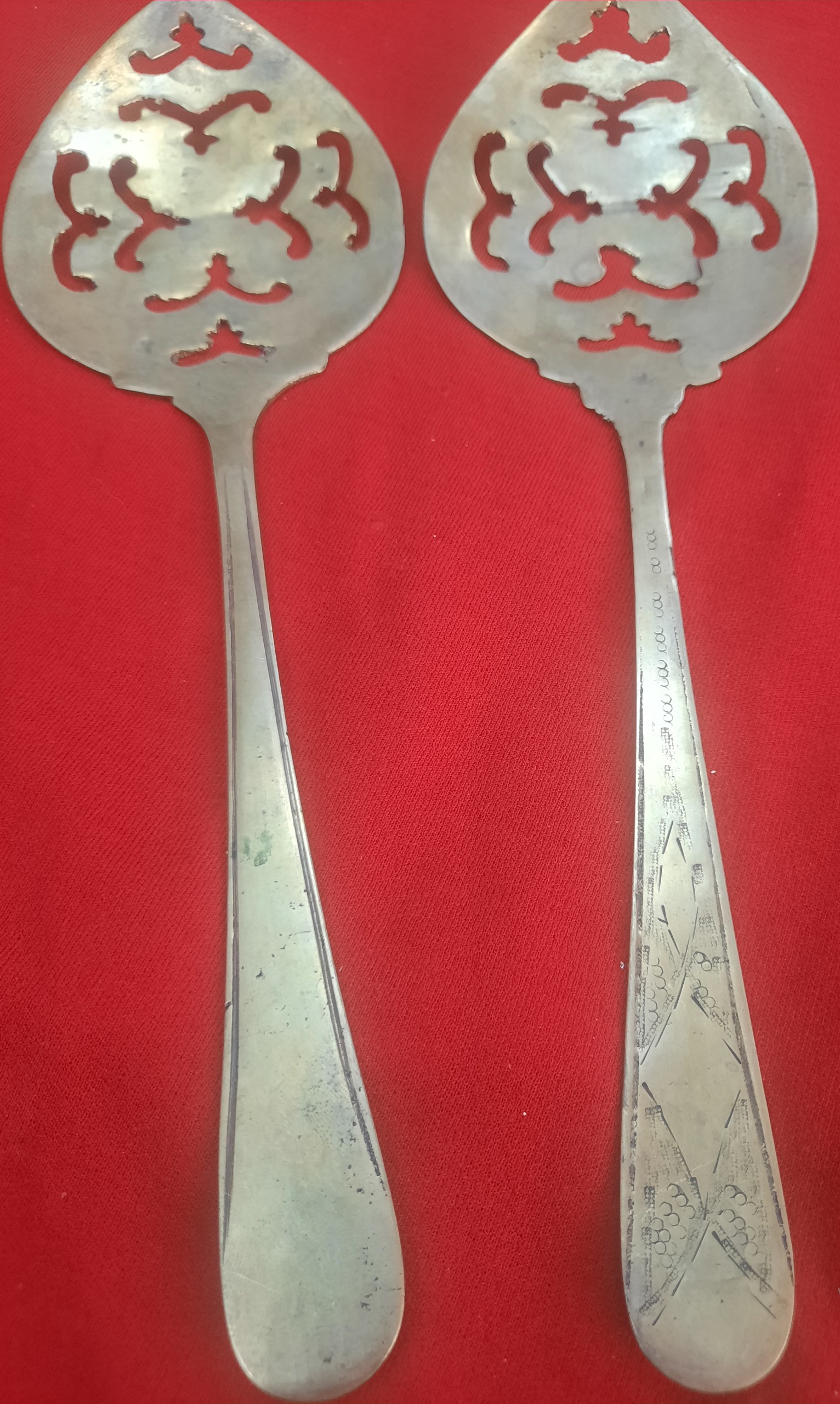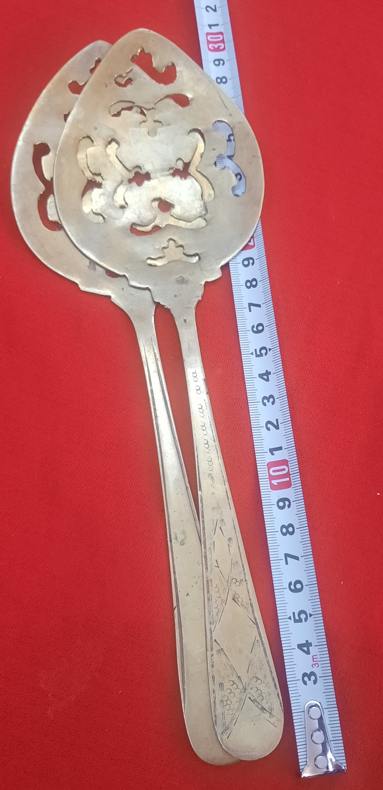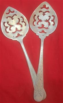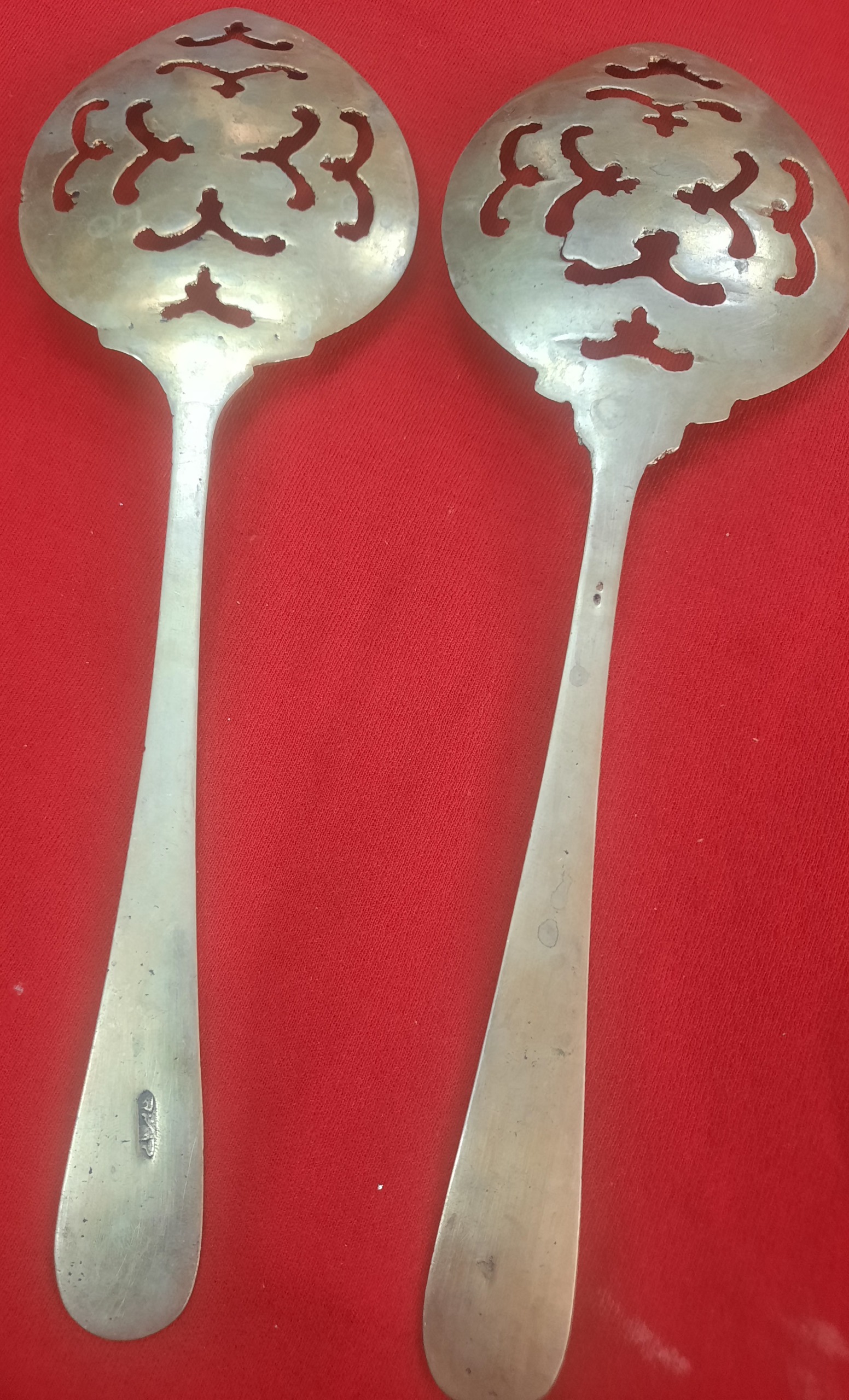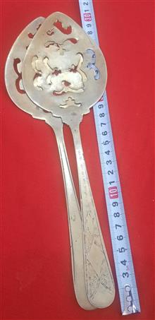 یک جفت کفکیر برنجی دست ساز مشبک انتیک وکلکسیونی