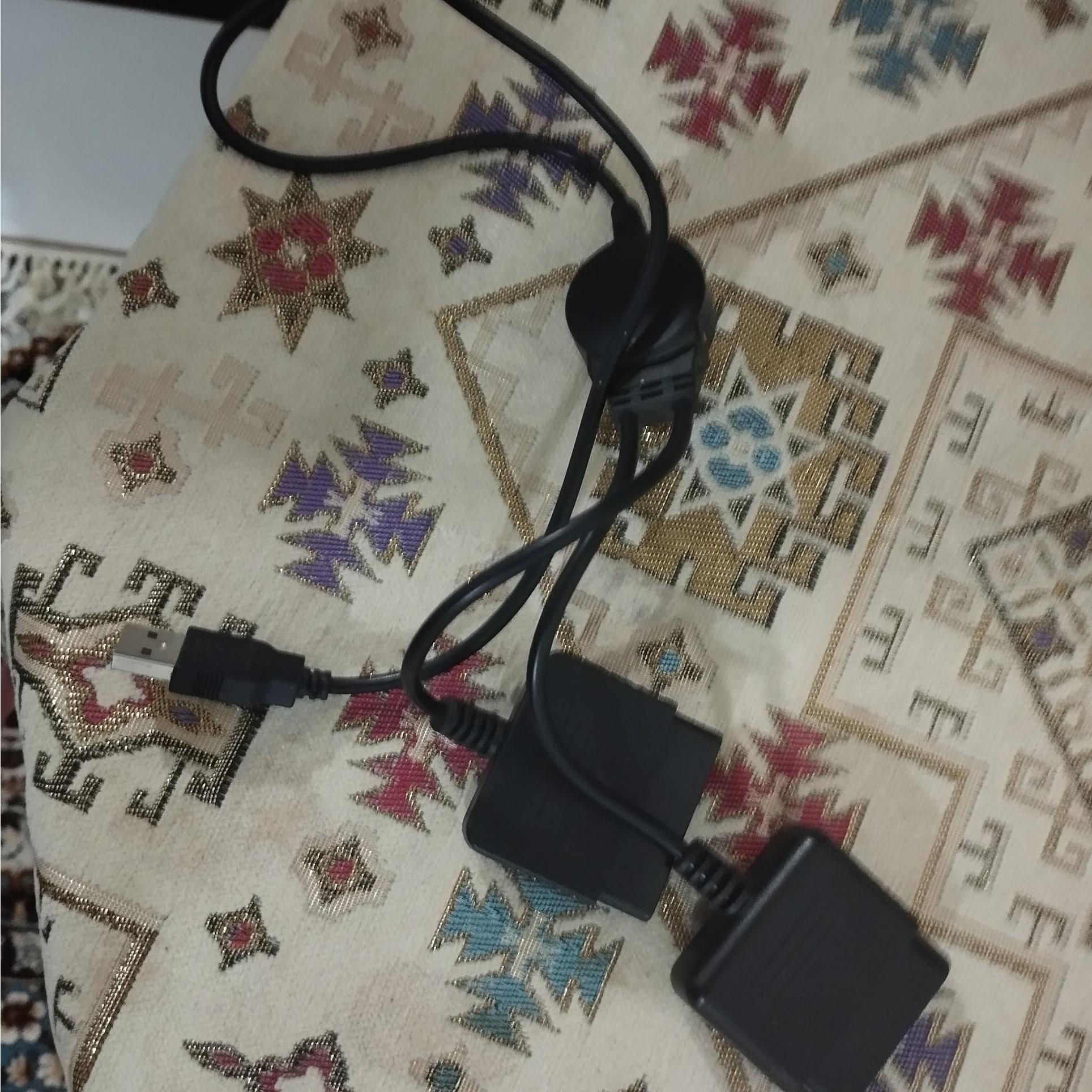 کابل تبدیل برای وصل کردن دسته پلی1و2و3 سیم دار به کامپیوتر کابل یو اس بی را به کامپیوتر یا لپ تاپ وصل میکنید بعدش دوسری اماده برای استفاده دارد دودسته هم زمان میشود وصل کرد.