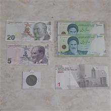 2 اسکناس 20و5 لیر ترکیه یک سکه کلیکسیونی و سه1000