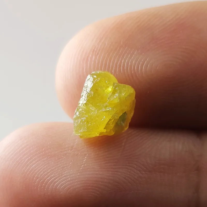 توضیح: نمونه این راف (سنگ اسفن یا تیتانیت شفاف) توسط همکاران، تراش برلیان (راند) زده شد که تجربه بسیار زیبا و موفقیت آمیزی در کیفیت نگین ایجاد شده با درخشش (ضریب شکست بالا) و زیبایی شبیه گارنت های دمانتوئید، رقم خورد