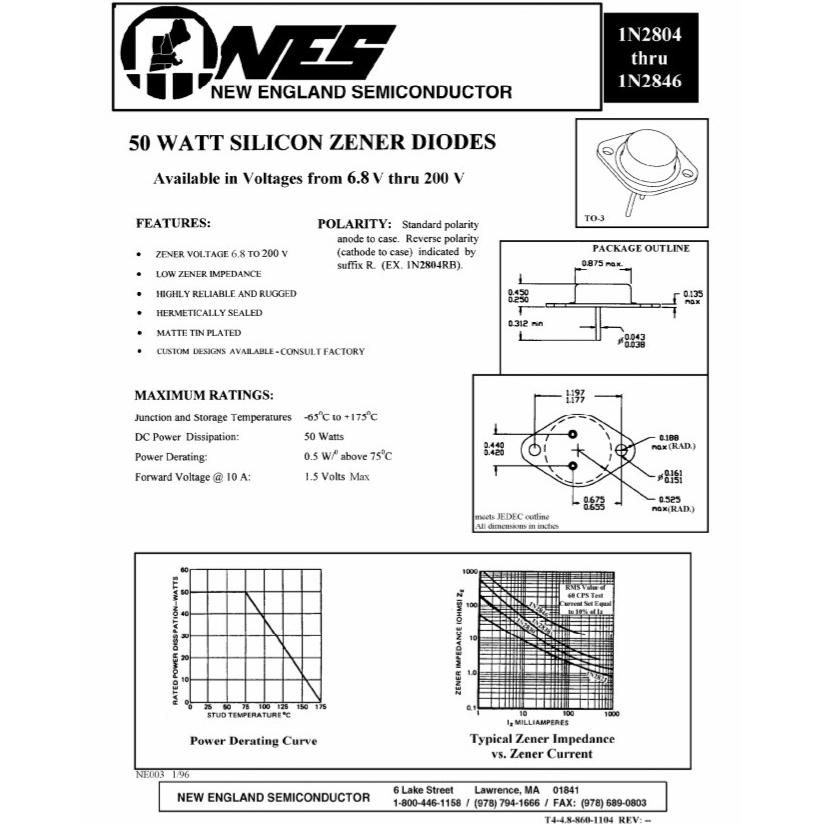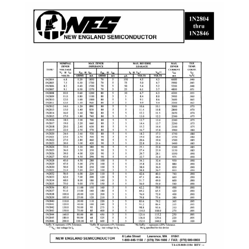 زینر 1N2842B قابلمه ای 6.8تا200 ولت50 وات طلاییUSA