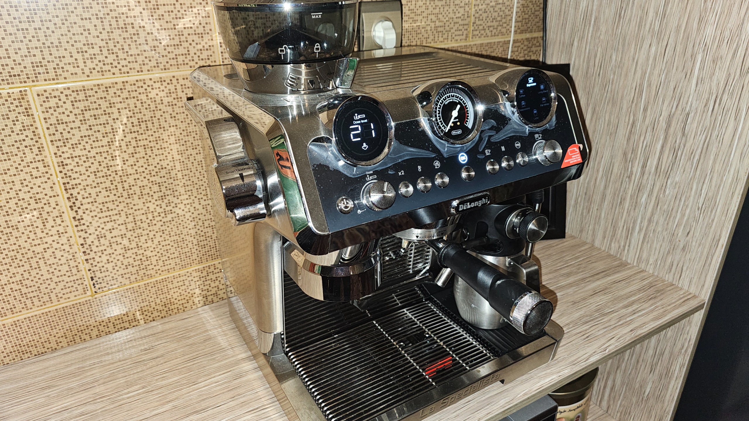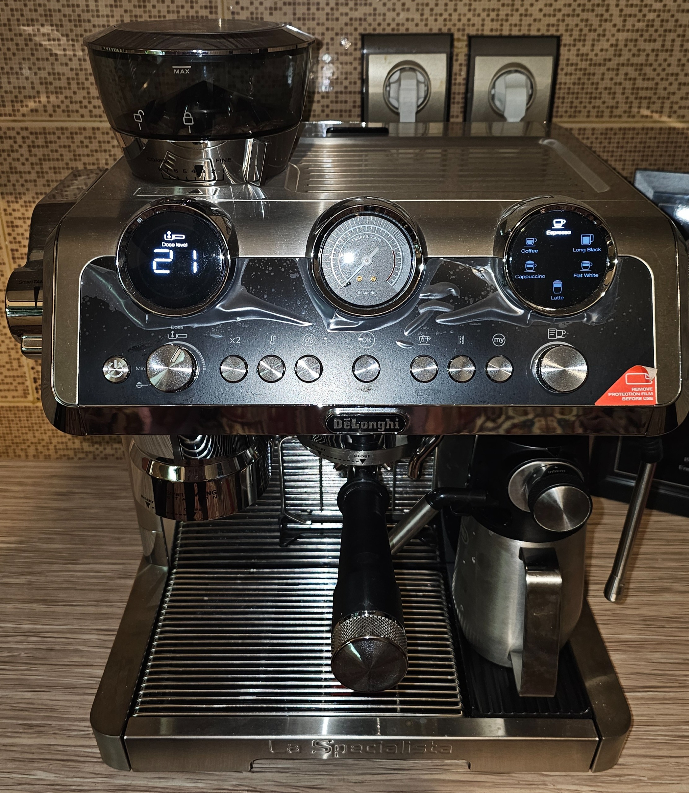 دستگاه اسپرسو ساز نیمه اتوماتیک نیمه صنعتی دلونگی مدل La Specialista Maestro EC9665.M, دو نیم لیتر مخزن آب. ششصد میلی لیتر مخزن شیر. توان 1450 وات. 19 بار قدرت دستگاه که در بین دستگاه های خانگی بالاترین قدرت را داراست. شیر ریز اتوماتیک و دستی. خرد کن قهوه با ظرفیت400 گرم. هشت حالت آسیاب. هشت مدل نوشیدنی مختلف با قابلیت شخصی سازی.پنج حالت تنظیم دما. بسیار کم کارکرد. مناسب کافه های کوچک