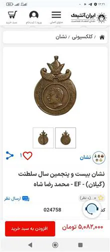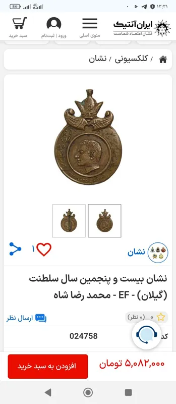 نشان یا مدال بسیار کمیاب زیبای پهلوی .سنجاق فابریک بکر ودست نخورده .تمیز نشده.نشان هدیه مردم گیلان به شاهنشاه به مناسبت 25سال سلطنت پهلوی  شهریور 1344,,,تمام نوشته برجسته صورت شاه عالی .گنگره سالم ..قیمت سایت انتیک رو گذاشتم که مقایسه کنید با اون کیفیت ودو خط بر رو روی مدال قیمت زده 5میلیون