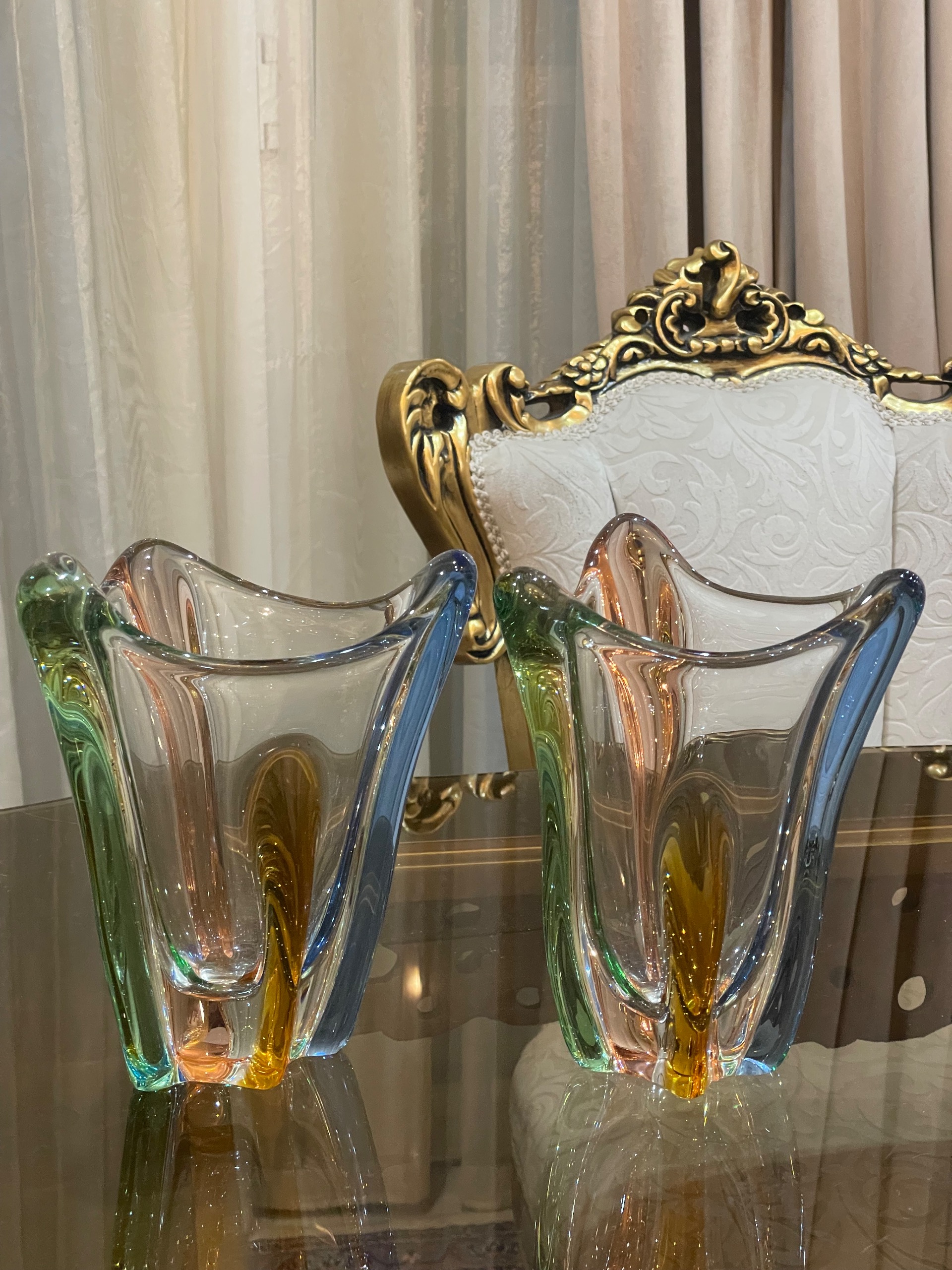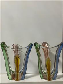 جفت گلدان کریستال وینتیج (1950) ساخت چک طراح Frantisek Zemek
