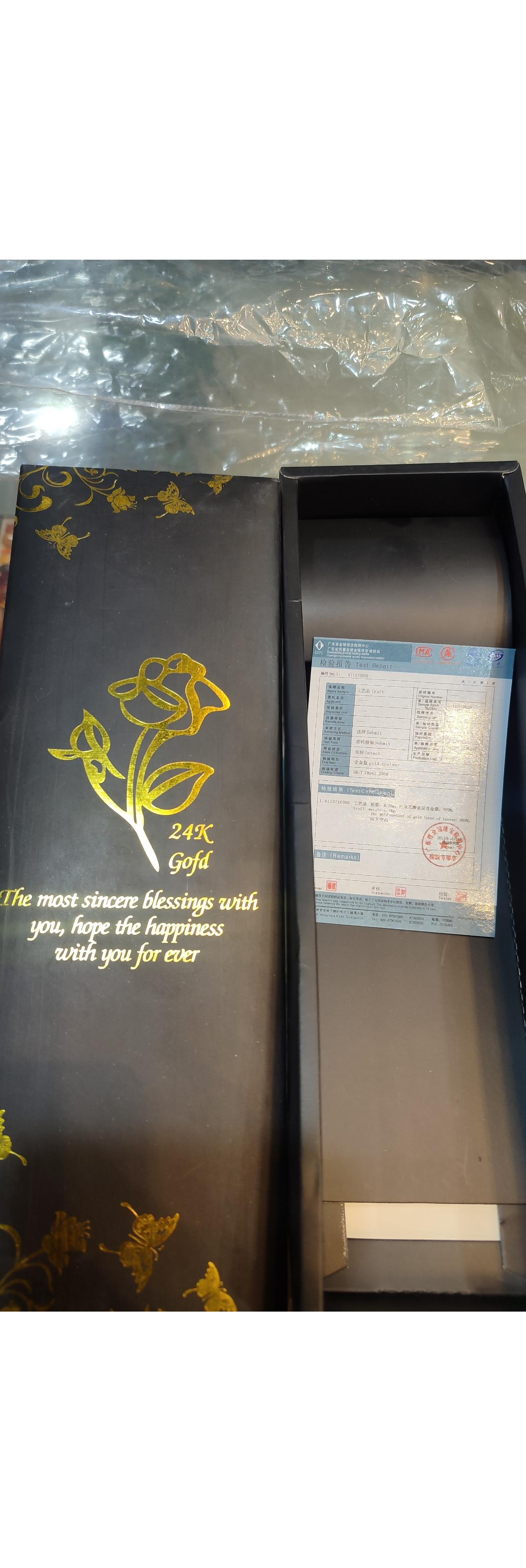 گل رزآبکاری طلا 24 عیار با شناسنامه پایه و باکس