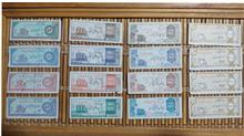 ست شامل 16 برگ کوپن ارزاق استانهای خراسان و سیستان و بلوچستان که12 برگ از مراحل 8تا10 از یک نفره تا 4 نفره با شماره کوپن مشابه و 4 کوپن خراسان سری پنجم (احتمالا)