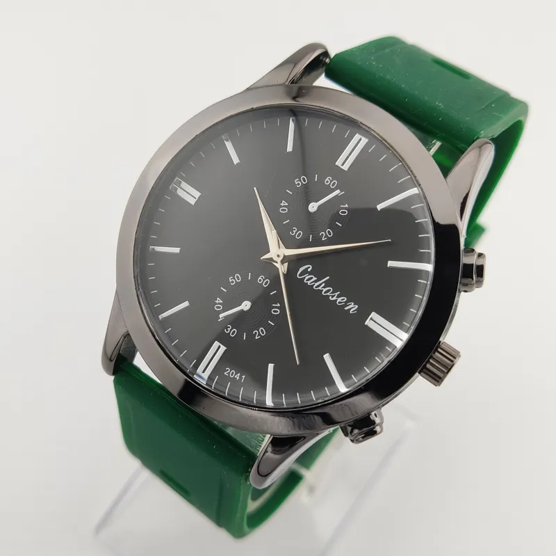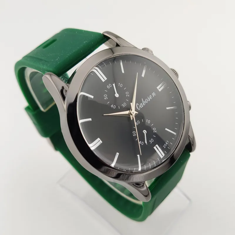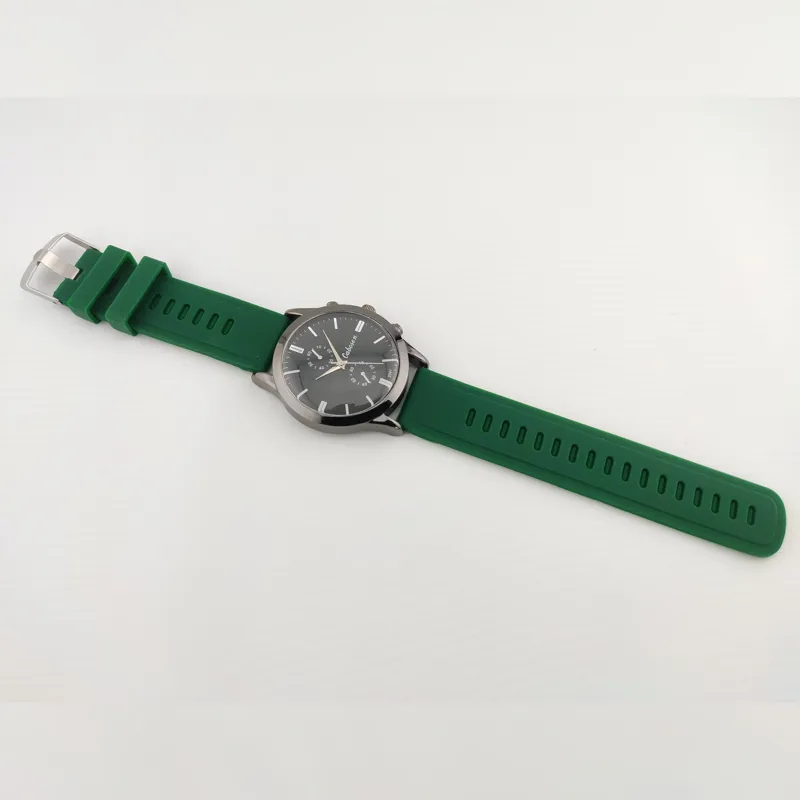 ساعت مردانه بند سیلیکون سبز موتور قدرتمند ضدآب