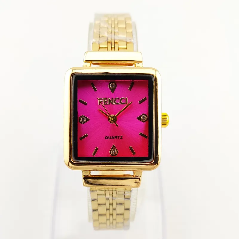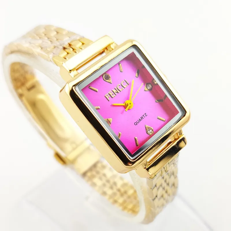 ساعت زنانه FENCCI دستبندی صفحه صورتی مربع ضدآب