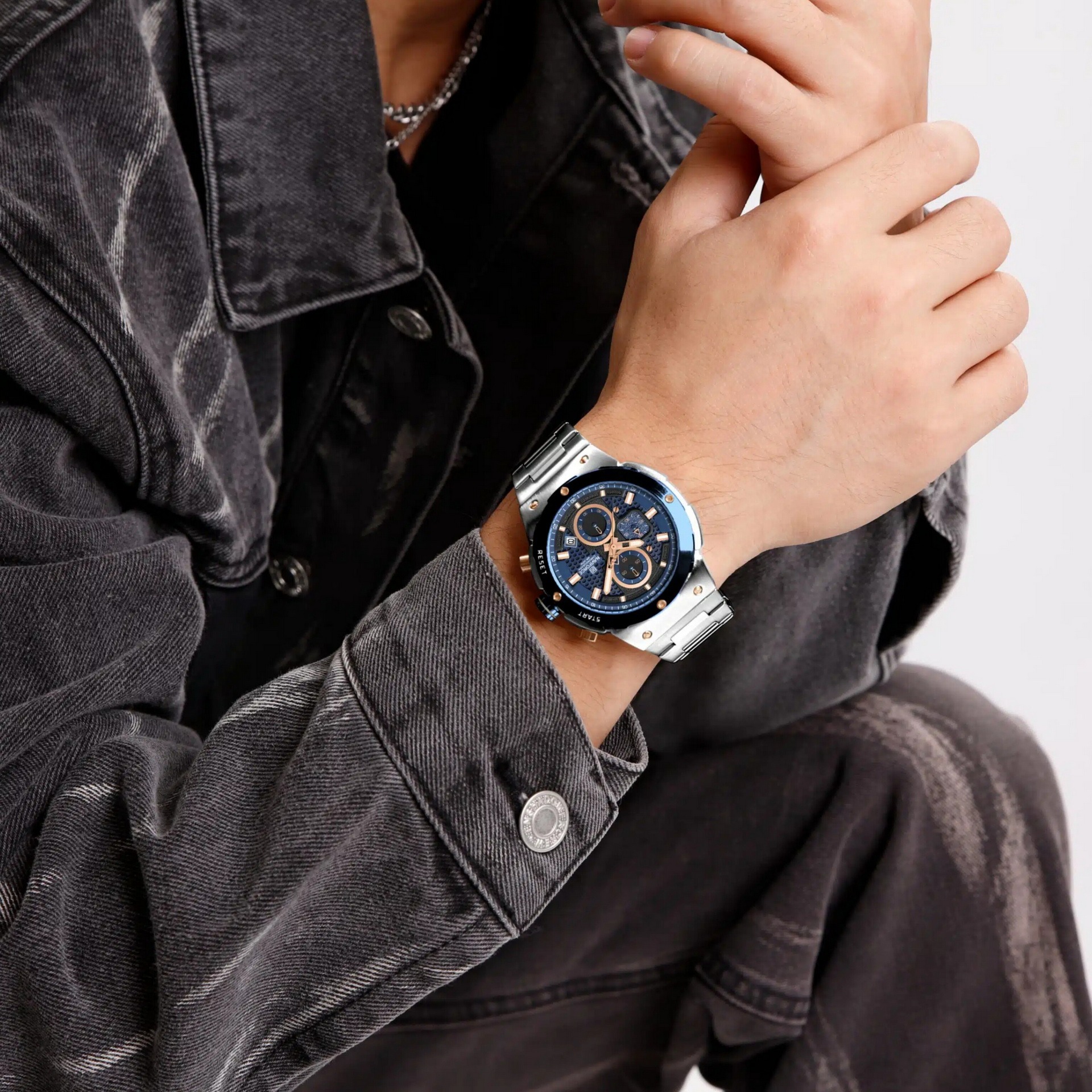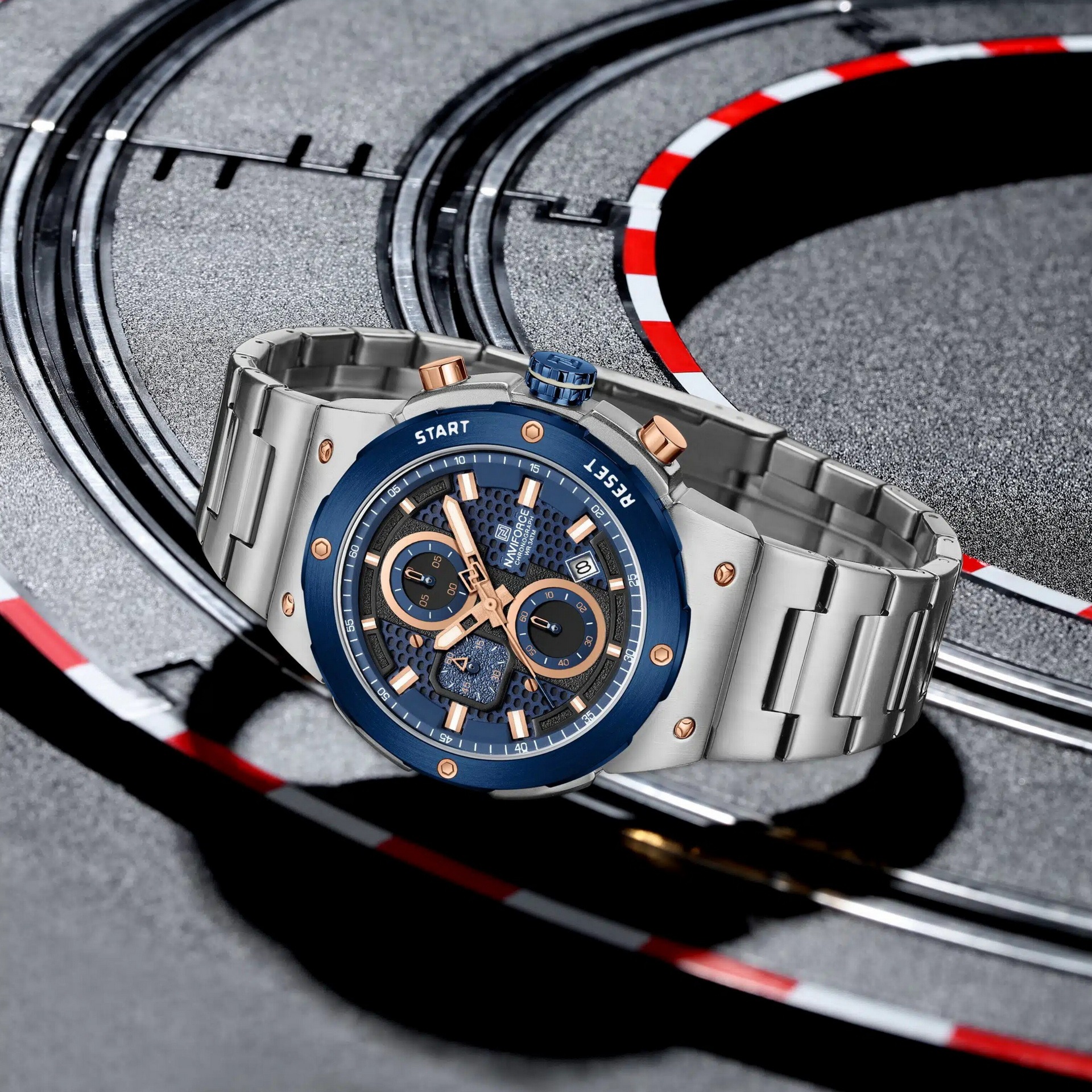 ساعت نیوی فورس استیل توپر سه موتوره تقویمدار ضدآب