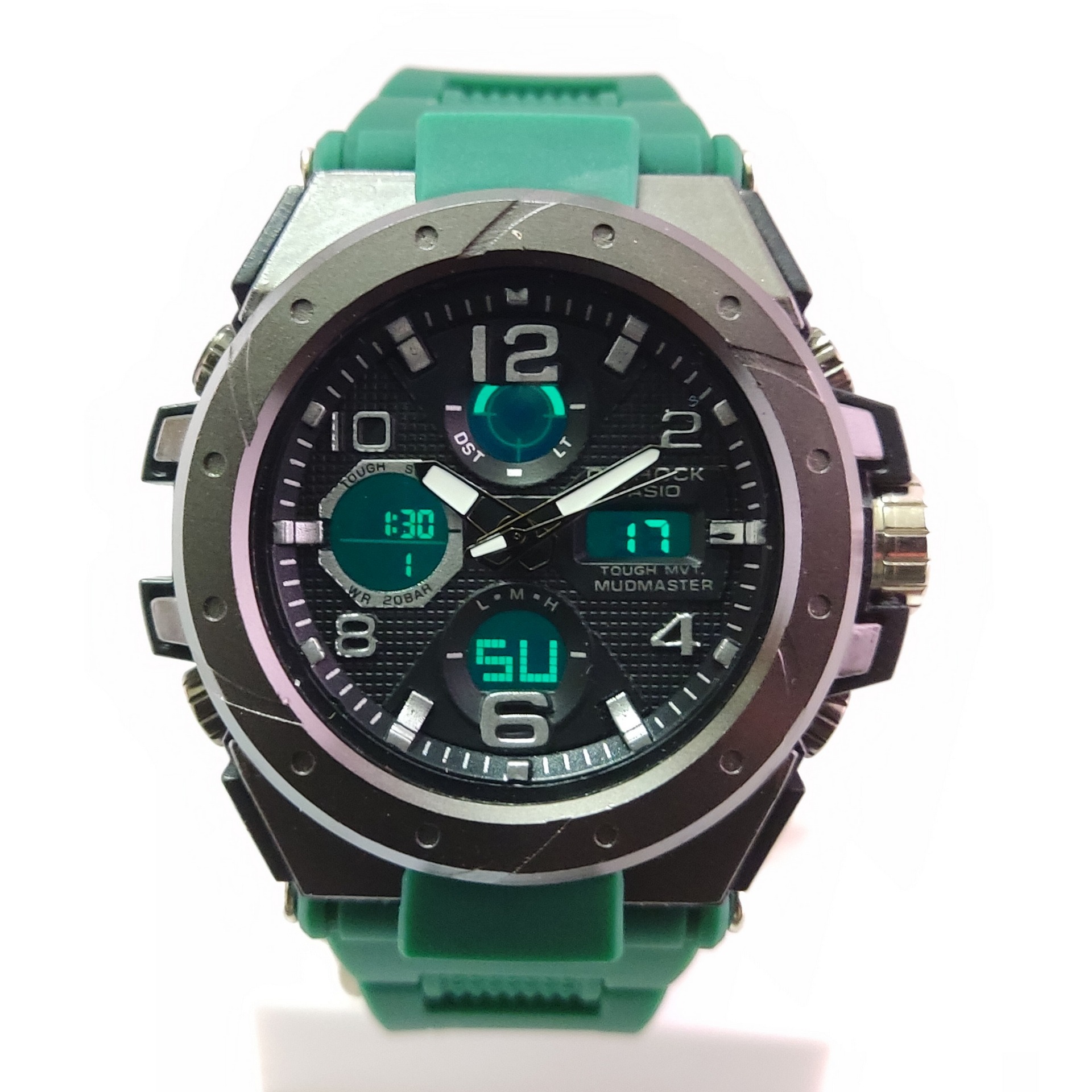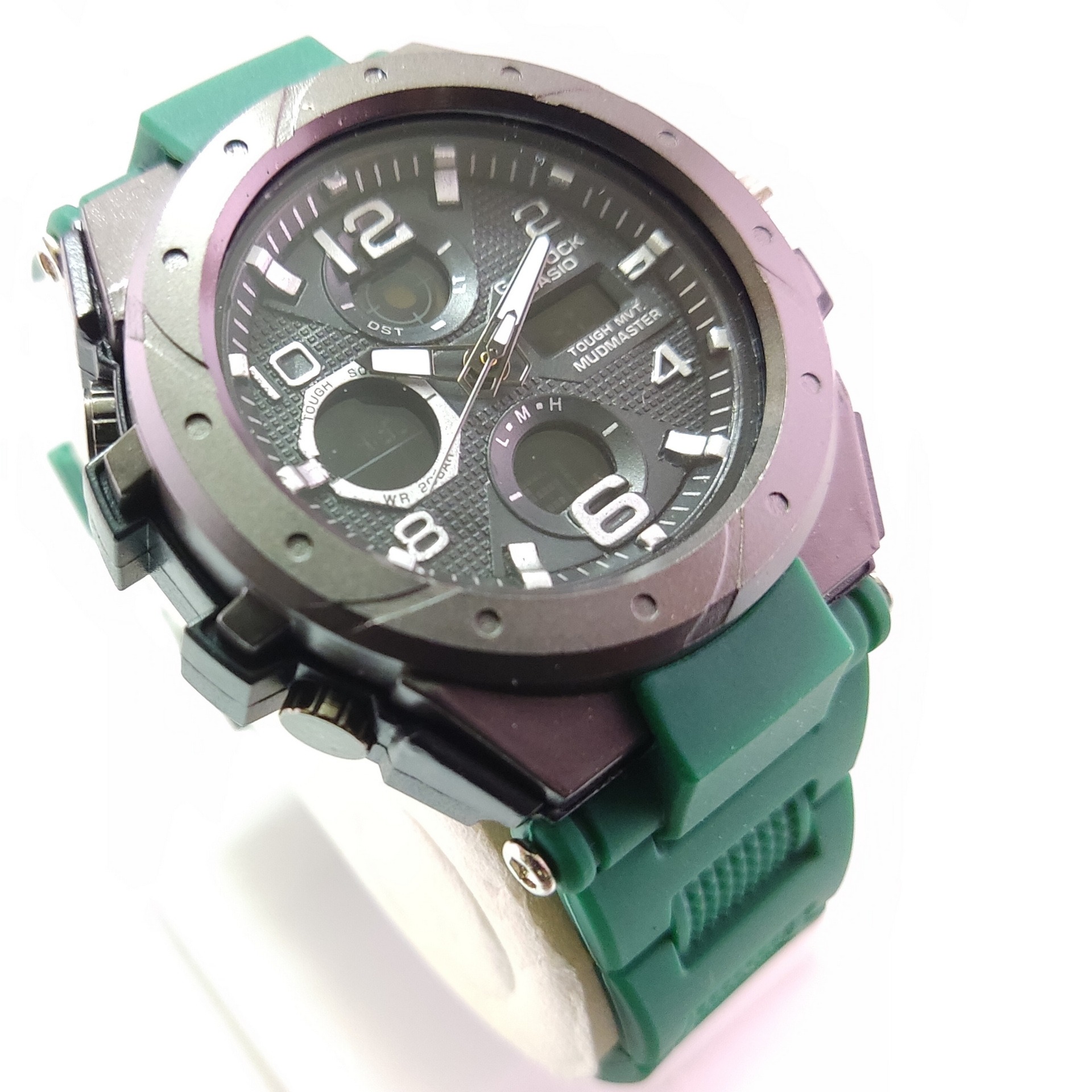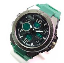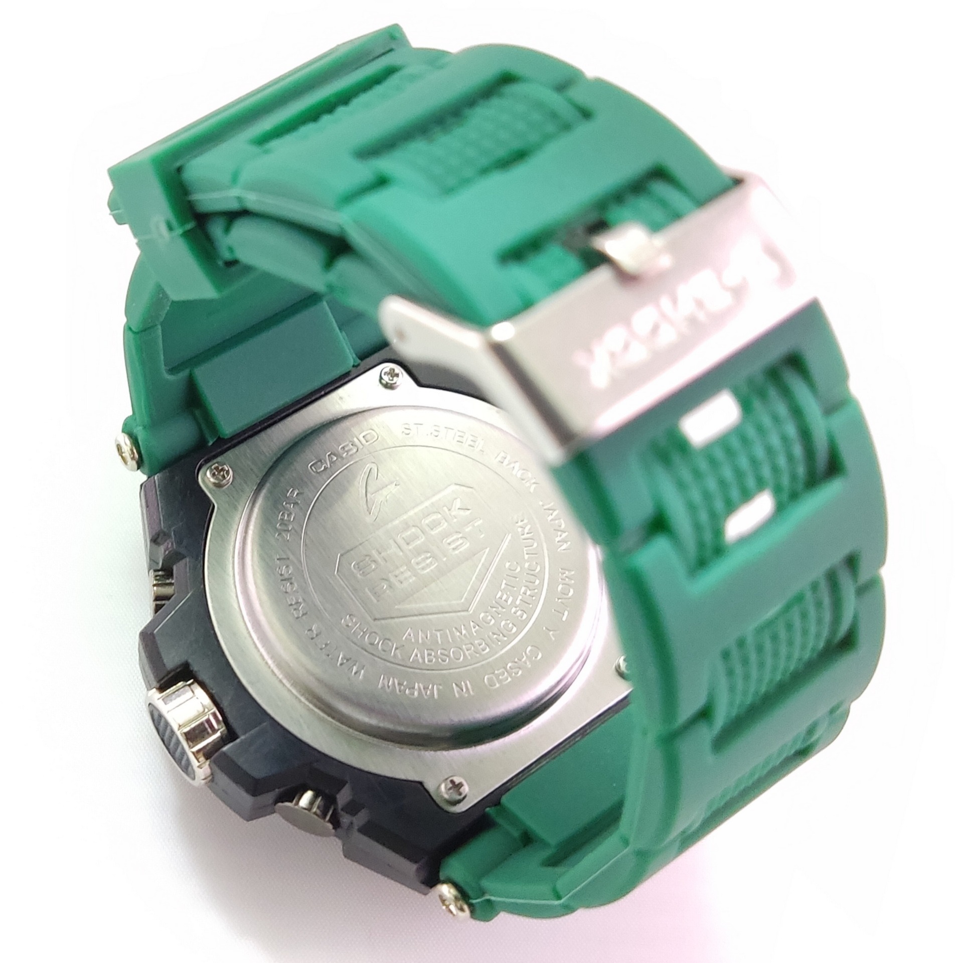 ساعت کاسیو جی شاک دوزمانه قاب استیل بند سبز ضدآب