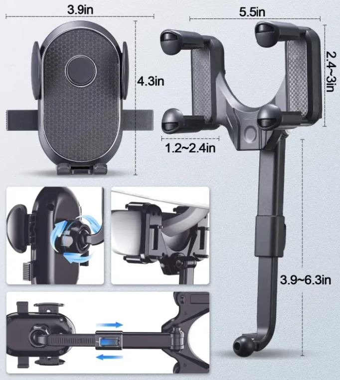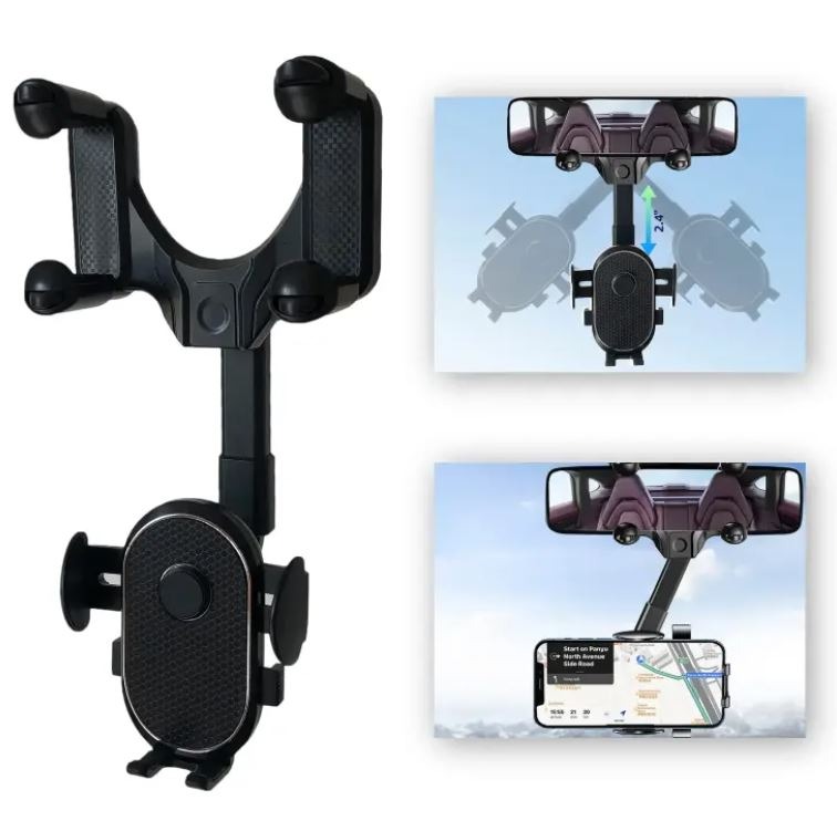 این هولدر با اتصال به پشت آیینه خودرو مزایایی مانند دید بهتر و عدم نیاز به چسبونک را دارا میباشد . به هیچ وجه دید مفید رانندگی را محدود نمیکند .
