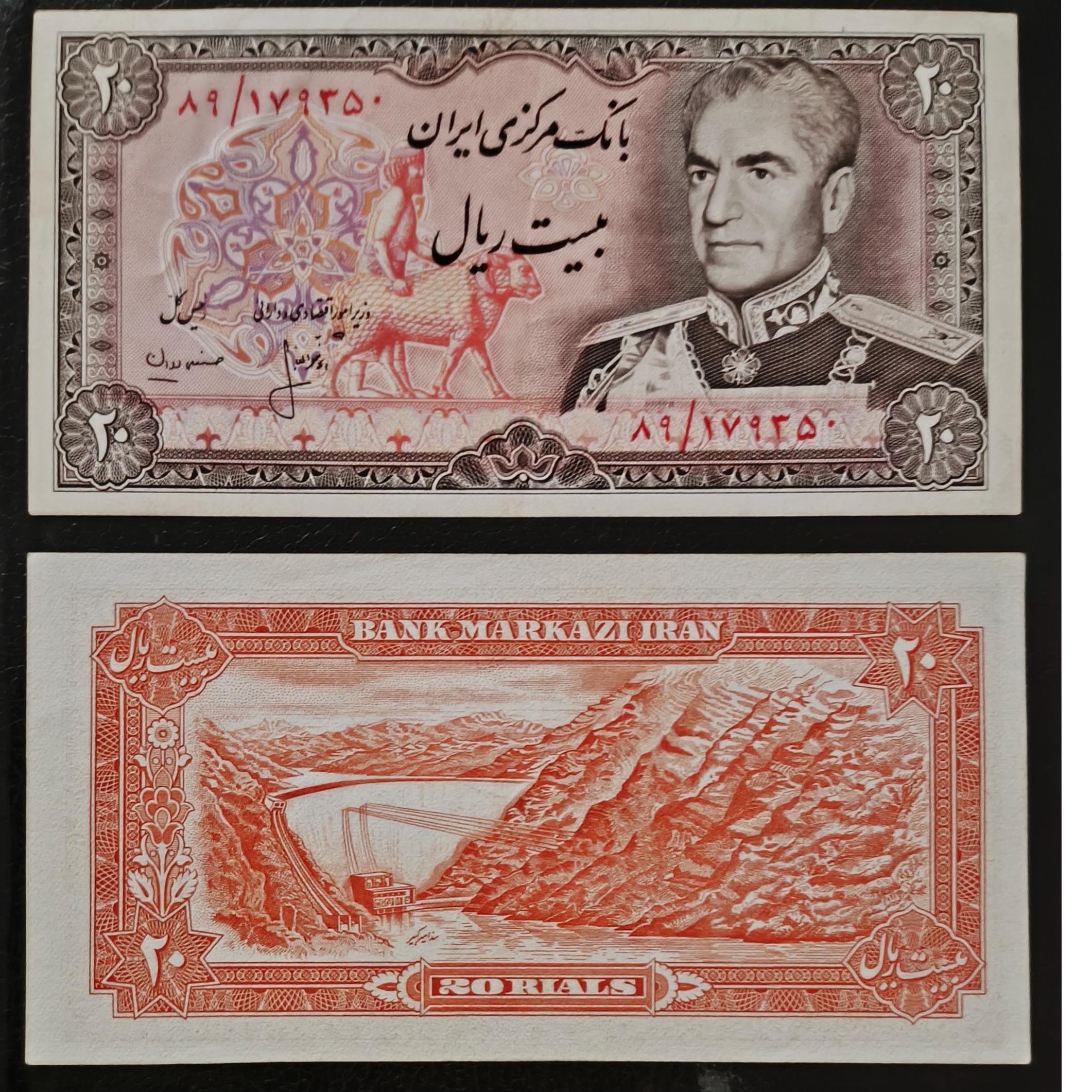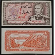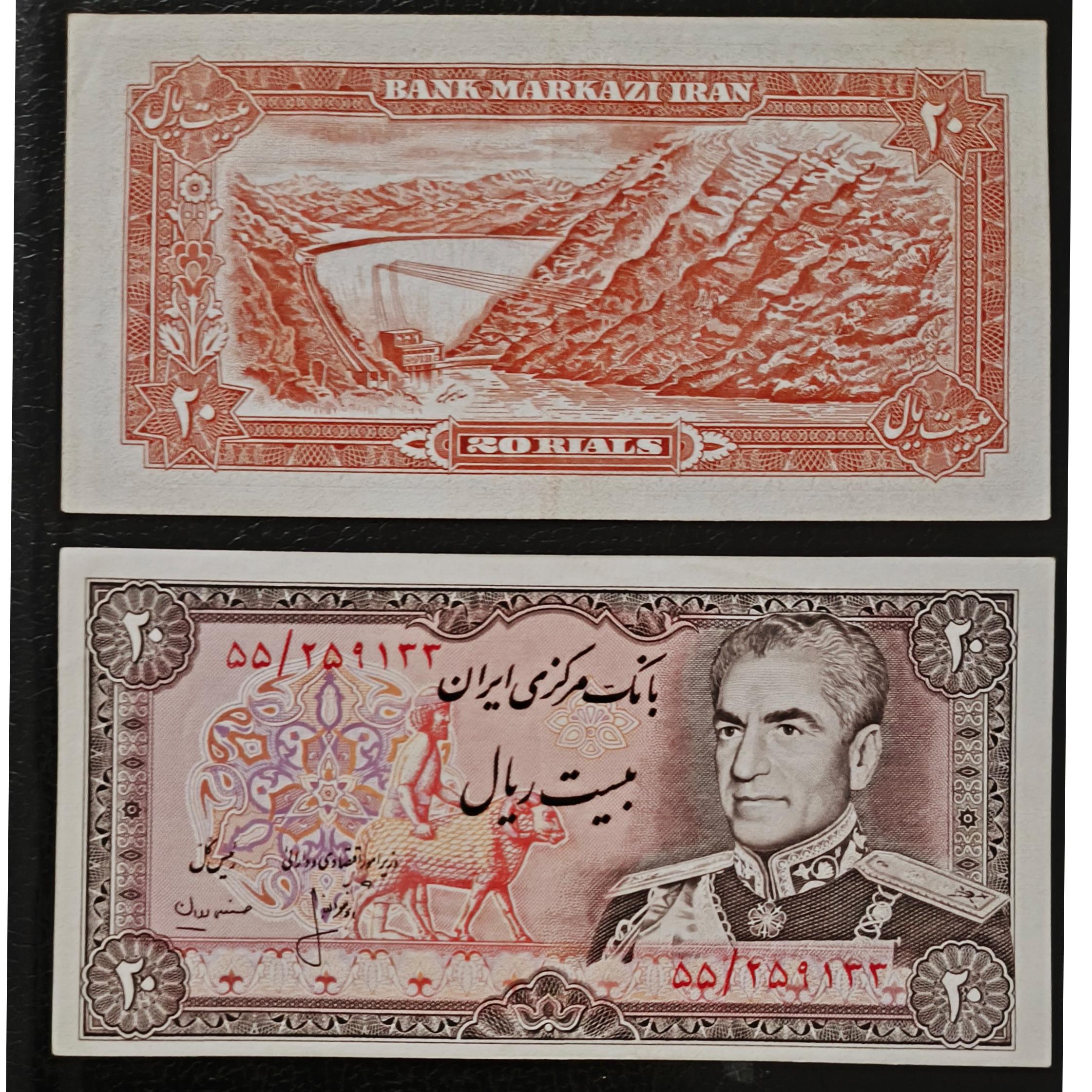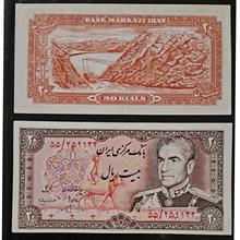 2 عدد اسکناس 20 ریالی محمدرضا شاه پهلوی توضیحات