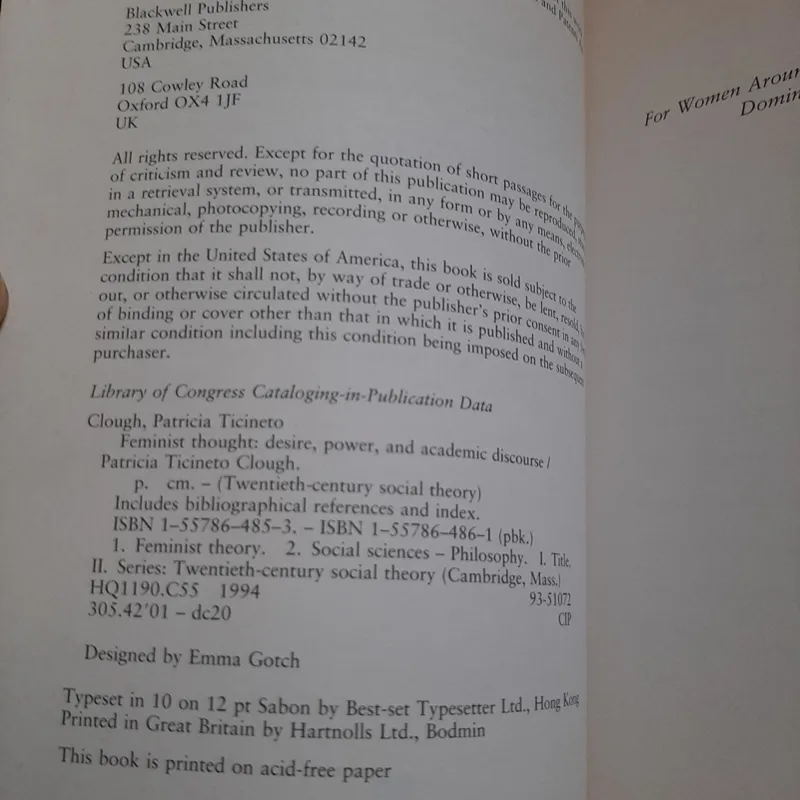 Feminist Thought (Patricia Ticiento Clough)