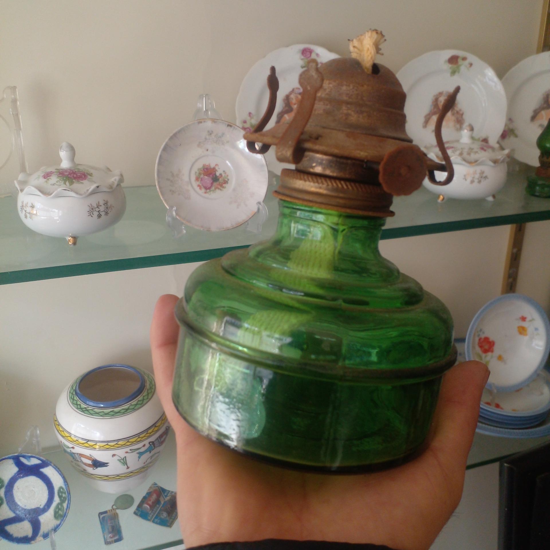 چراغ نفتی سبز خوشرنگ قدیمی