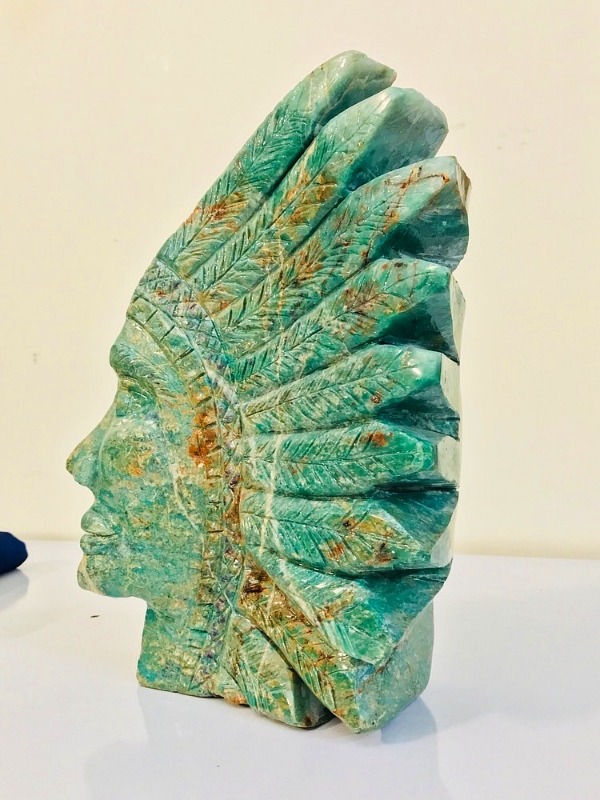 کاروینگ سرخ پوست سنگ یشم کاملا طبیعی به وزن 4کیلو گرم مطابق تصاویر ابعاد سنگ 21در 25 سانتیمتر