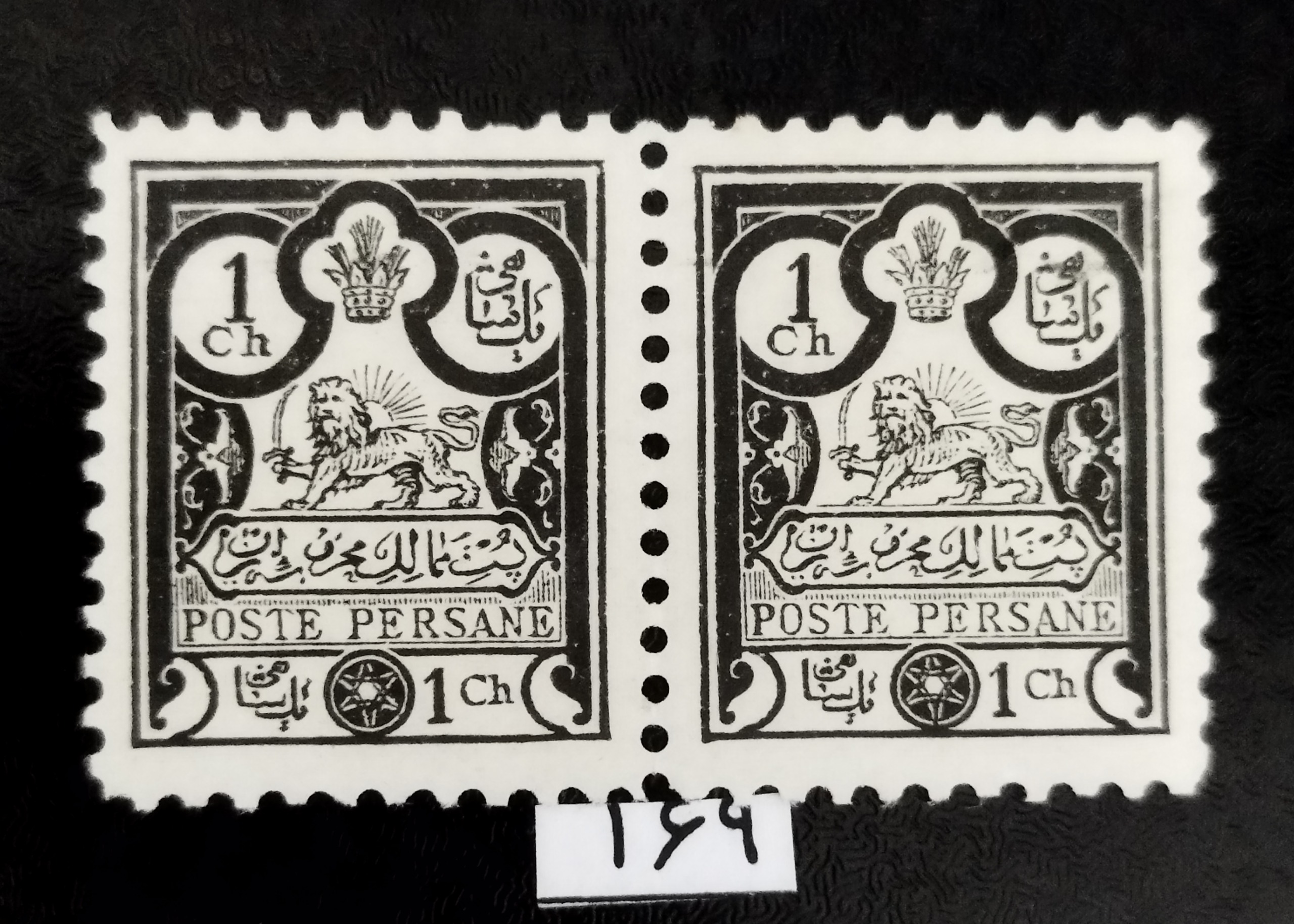 جفت تمبر نفیس 1 شاهی محرابی قاجار/چاپ فرانسه