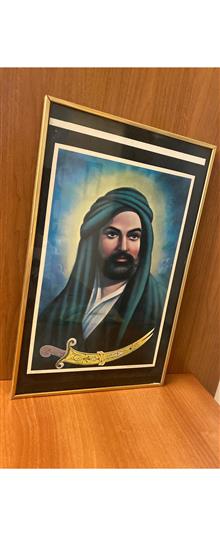 تابلو شماعل تمثال حضرت علی قاب آلمینیوم قدیمی آنتیک ابعاد 34 در 54