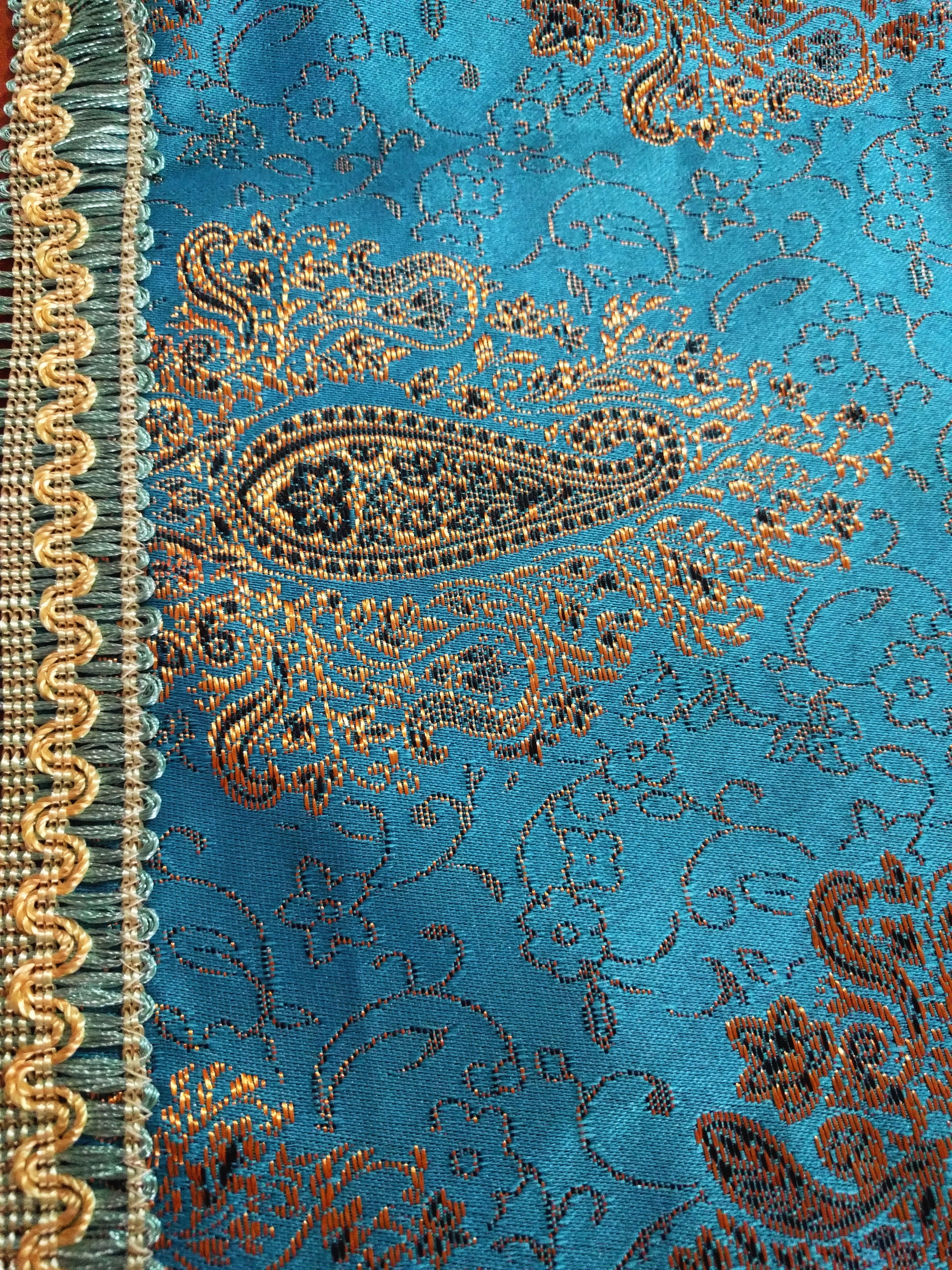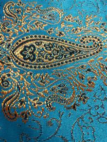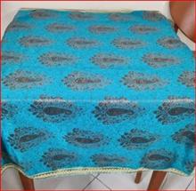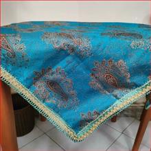 رومیزی ترمه فیروزه ای زرکوب دور حاشیه دوزی