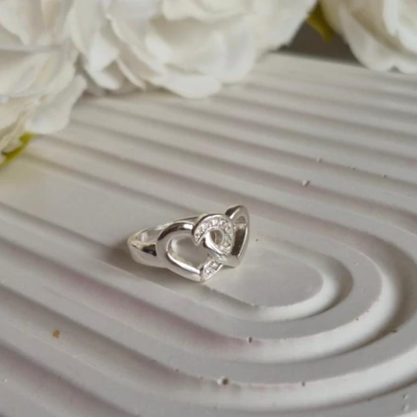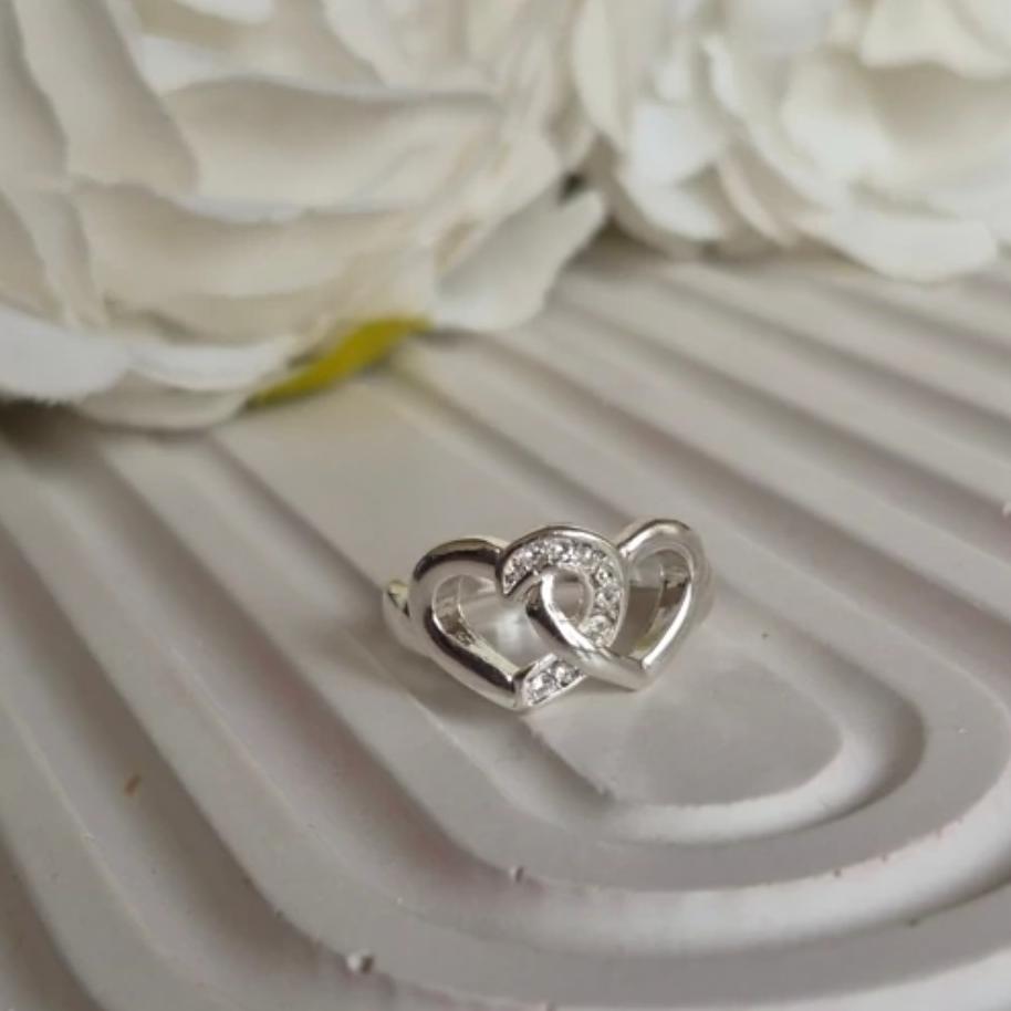 طراحی ظریف نقرهای با قلبهای دوتایی که نماد اتحاد، وفاداری و عشق بیپایان هست.