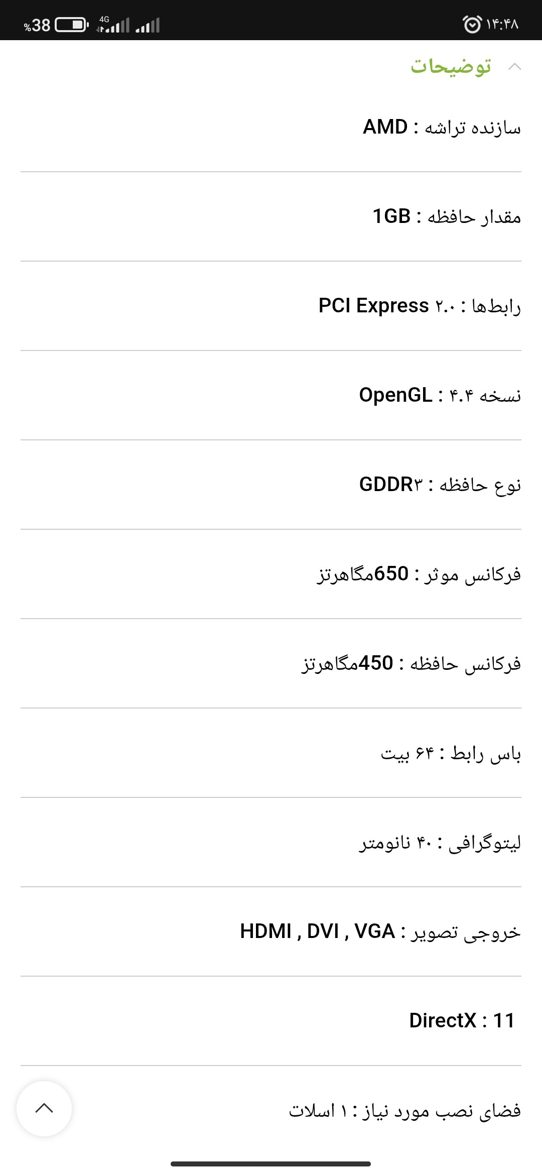 مشخصات کالا