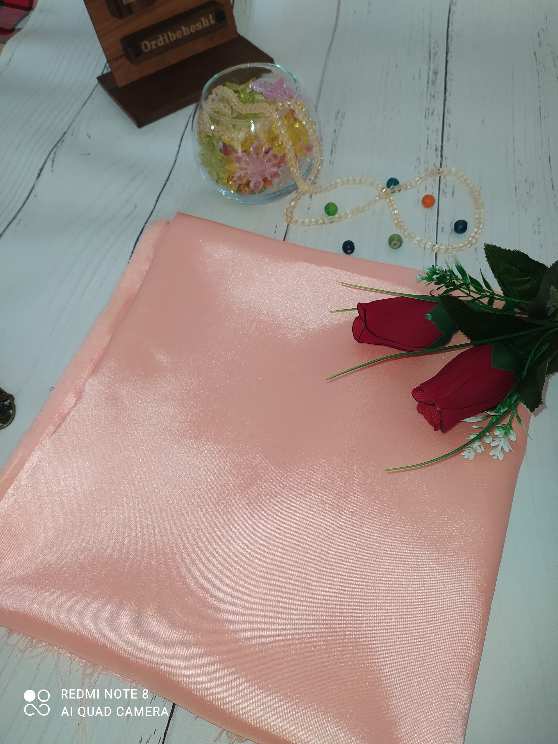 رنگ پارچه گلبهی ملایم هست،باهاش میتونید تاپ..دامن...آسترکشی گیپور... بدوزید