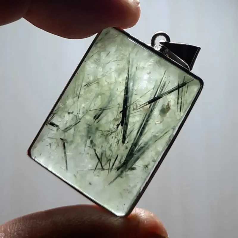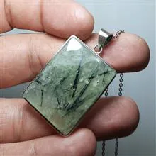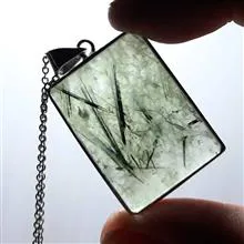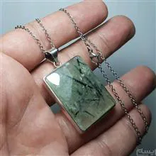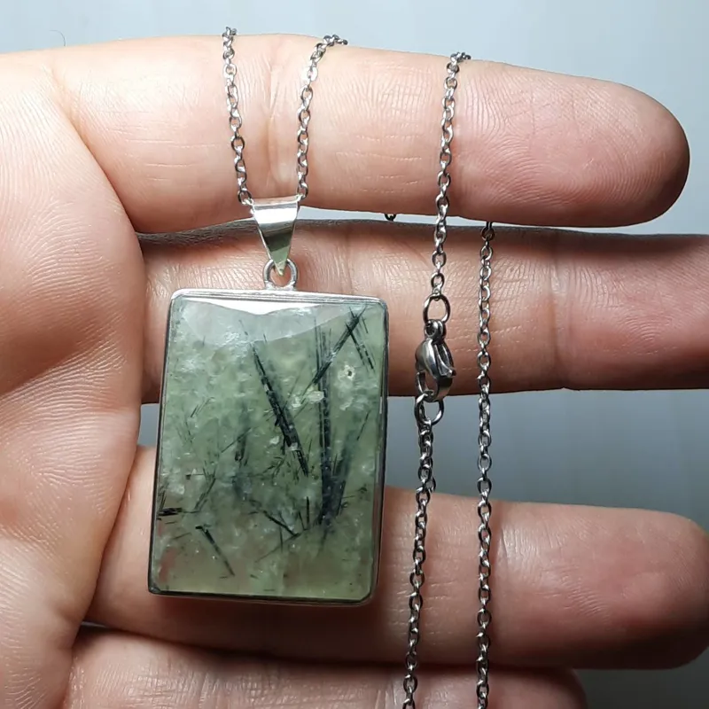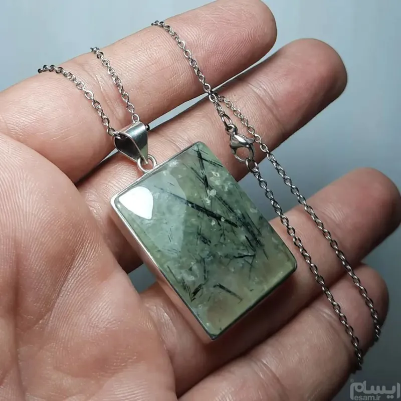 گردنبند پرهنیت اصل و طبیعی با آویز و قاب کلافی نقره دستساز ضخیم عیار 925 و زنجیر استیل 45 سانتیمتری