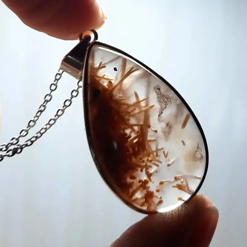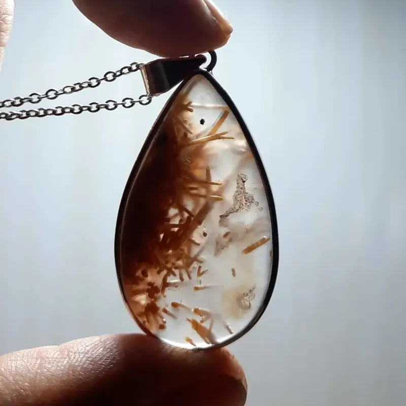 گردنبند عقیق روتایل اصل و طبیعی با آویز و قاب کلافی نقره دستساز ضخیم عیار 925 بدون زنجیر