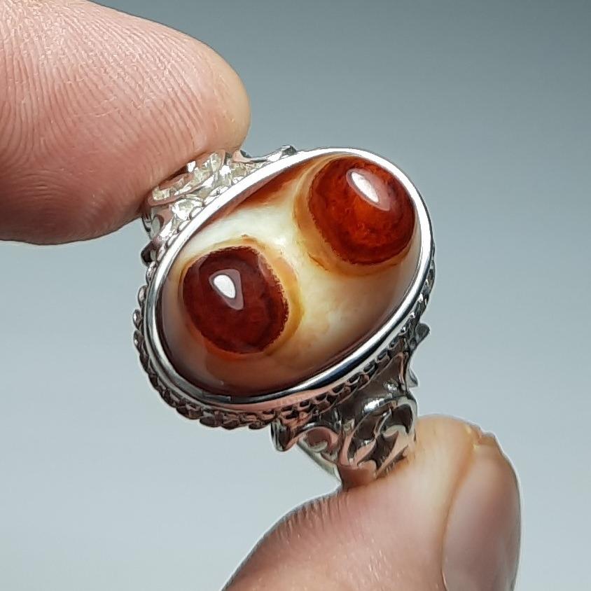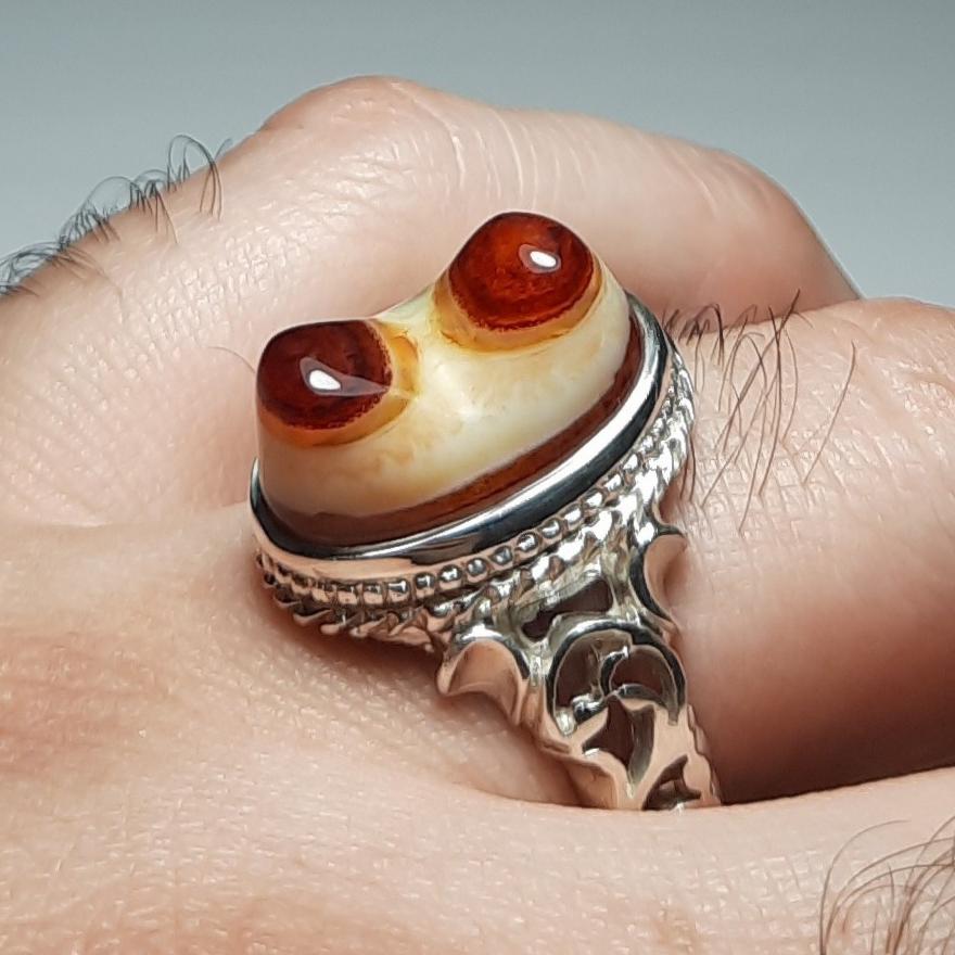 انگشتر نقره 925 عقیق سه پوست دوکوهانه معدنی