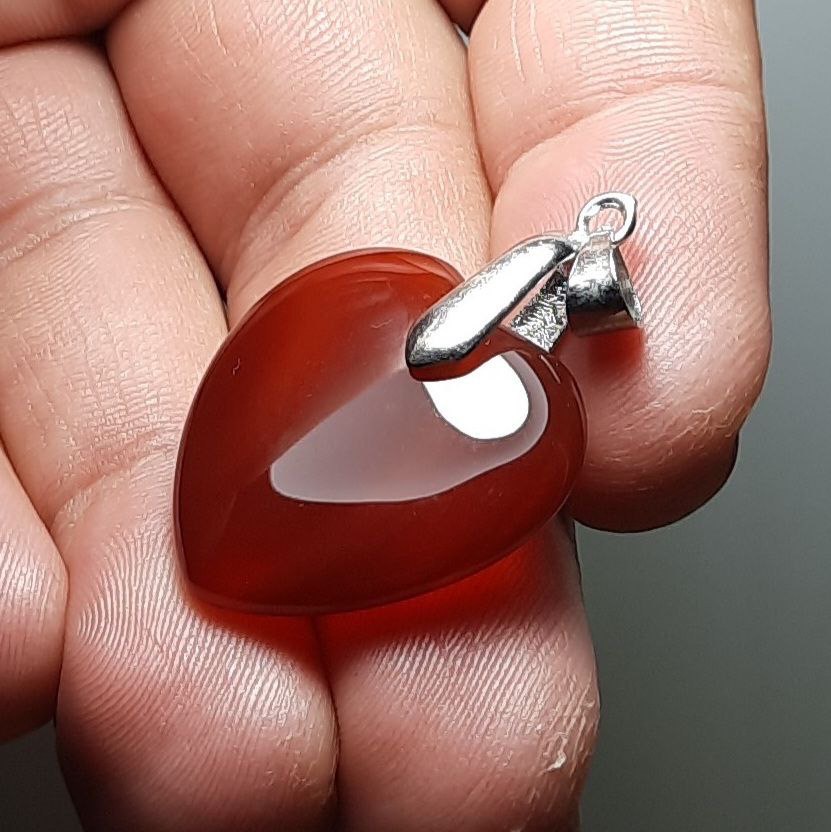 آویز عقیق سرخ خوشرنگ درشت اصل معدنی با تراش قلب دقیق و بی نقص