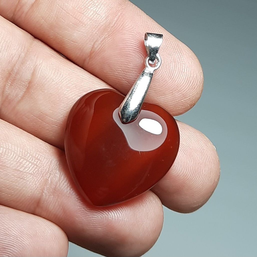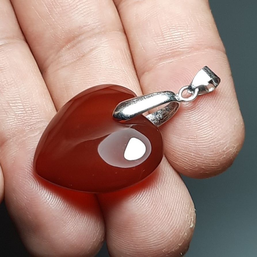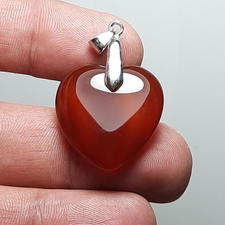آویز عقیق سرخ خوشرنگ درشت اصل معدنی با تراش قلب دقیق و بی نقص