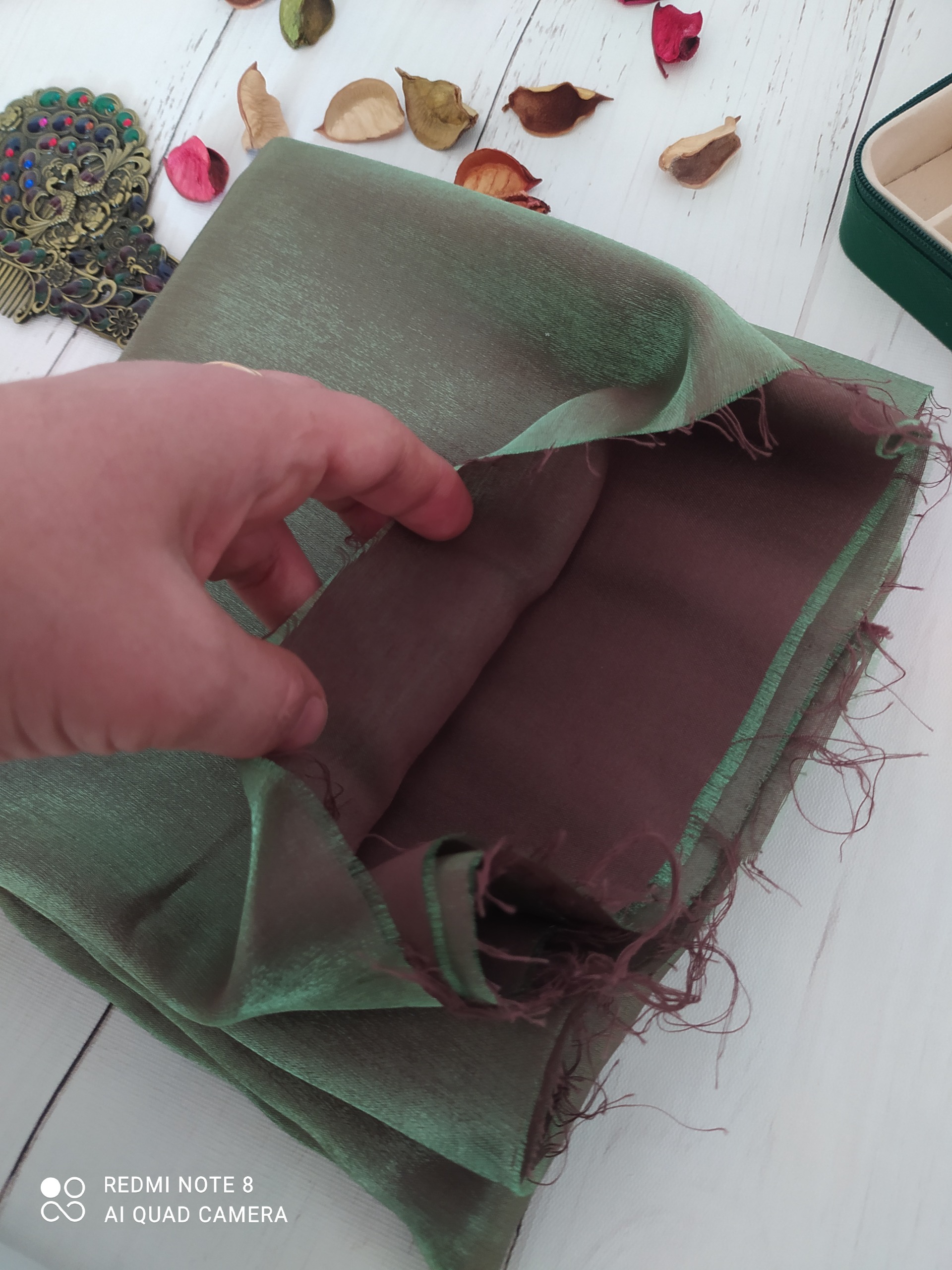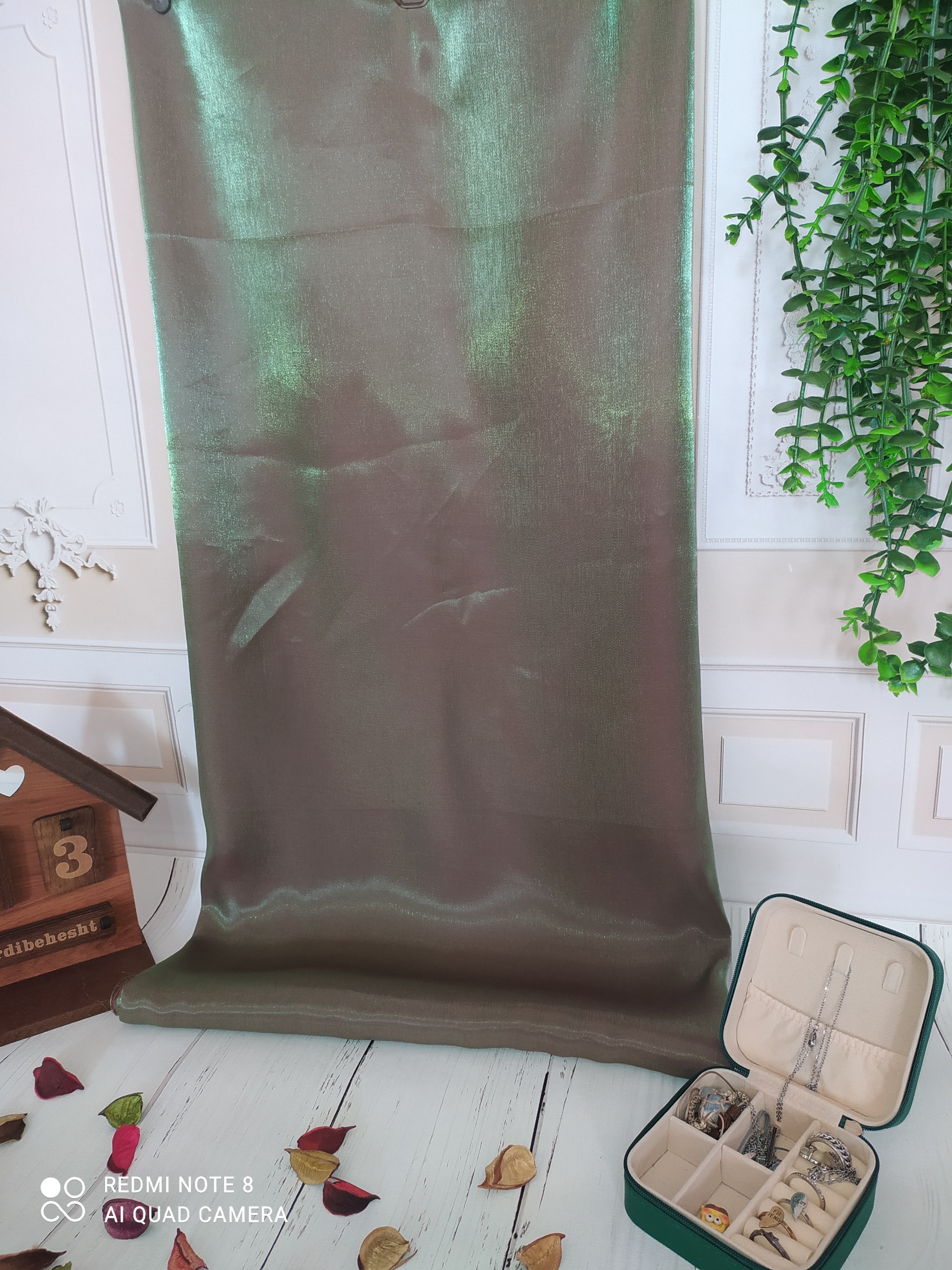 کشسانی نداره،دیدنداره،آبرفت ندارد،رنگ پارچه سبزیشمی هست،ولی با تکان دادن پارچه حالت سبز ،قهوه ای دیده میشود