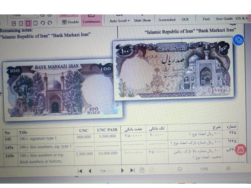 100 ریال ج.ا. 245 در کتاب اسکناس 80 درصد خیلی خوب