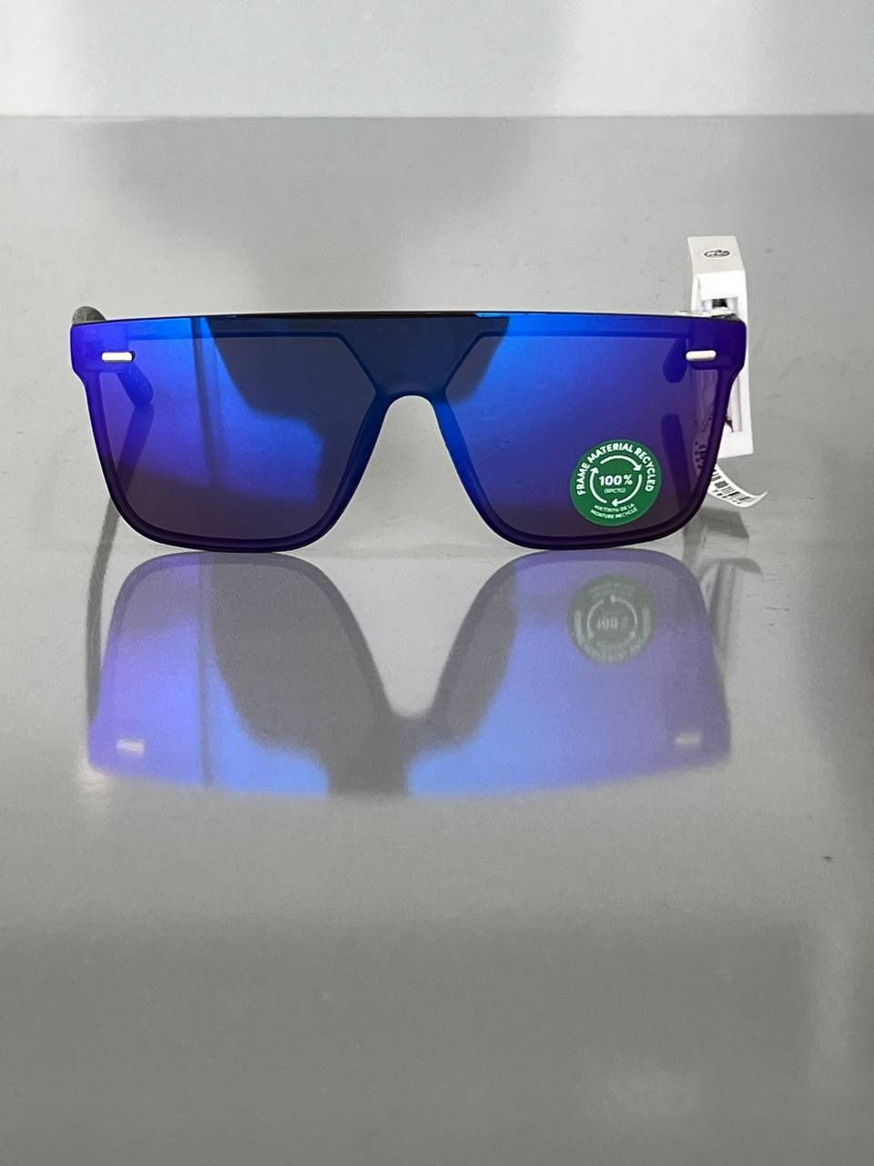 یکی از ویژگیهای متمایز این محصول، استفاده از متریال 100 درصد بازیافتی در ساخت فریم است که با برچسب سبز روی لنز تضمین شده است. این یعنی شما علاوه بر انتخاب یک محصول باکیفیت، به حفظ اکوسیستم زمین نیز کمک میکنید. فریم عینک به رنگ خاکستری دودی نیمهشفاف طراحی شده که تضاد بصری فوقالعادهای با لنزهای آبی عمیق ایجاد میکند.