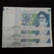 ست 3 برگی اسکناسهای 2000 تومنی پشت بادگیر که دارای ارور کادر و اندازه برش هست که سعی شده در عکسها به تصویر کشیده شود ضمن اینکه از شماره سریالهای زیبایی برخوردار هستند با امضای آقایان کرباسیان و همتی