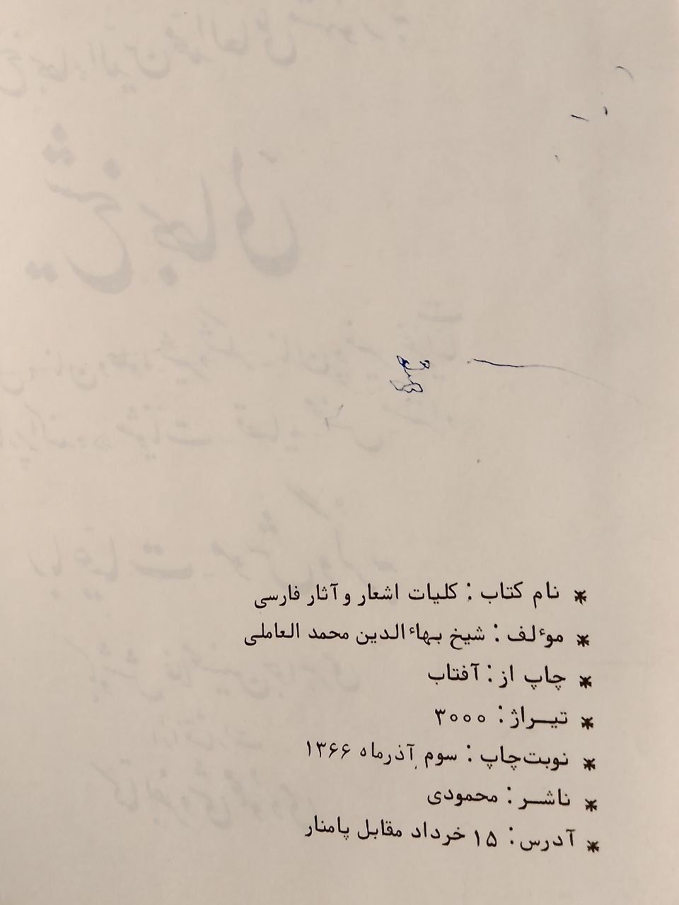 « کلیات اشعار و آثار فارسی شیخ بهاءالدین محمد العاملی مشهور به شیخ بهائی »