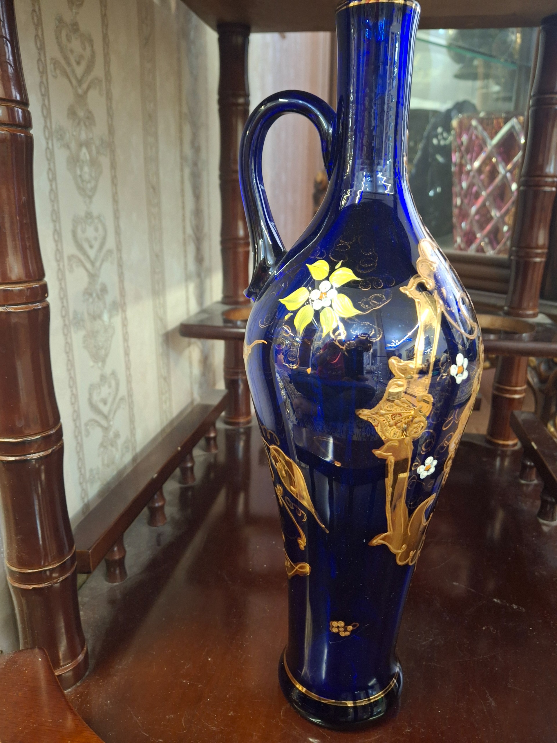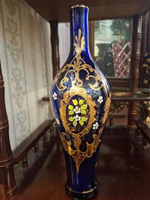 تنگ آبی طلاکوب گل برجسته 35 سانتی