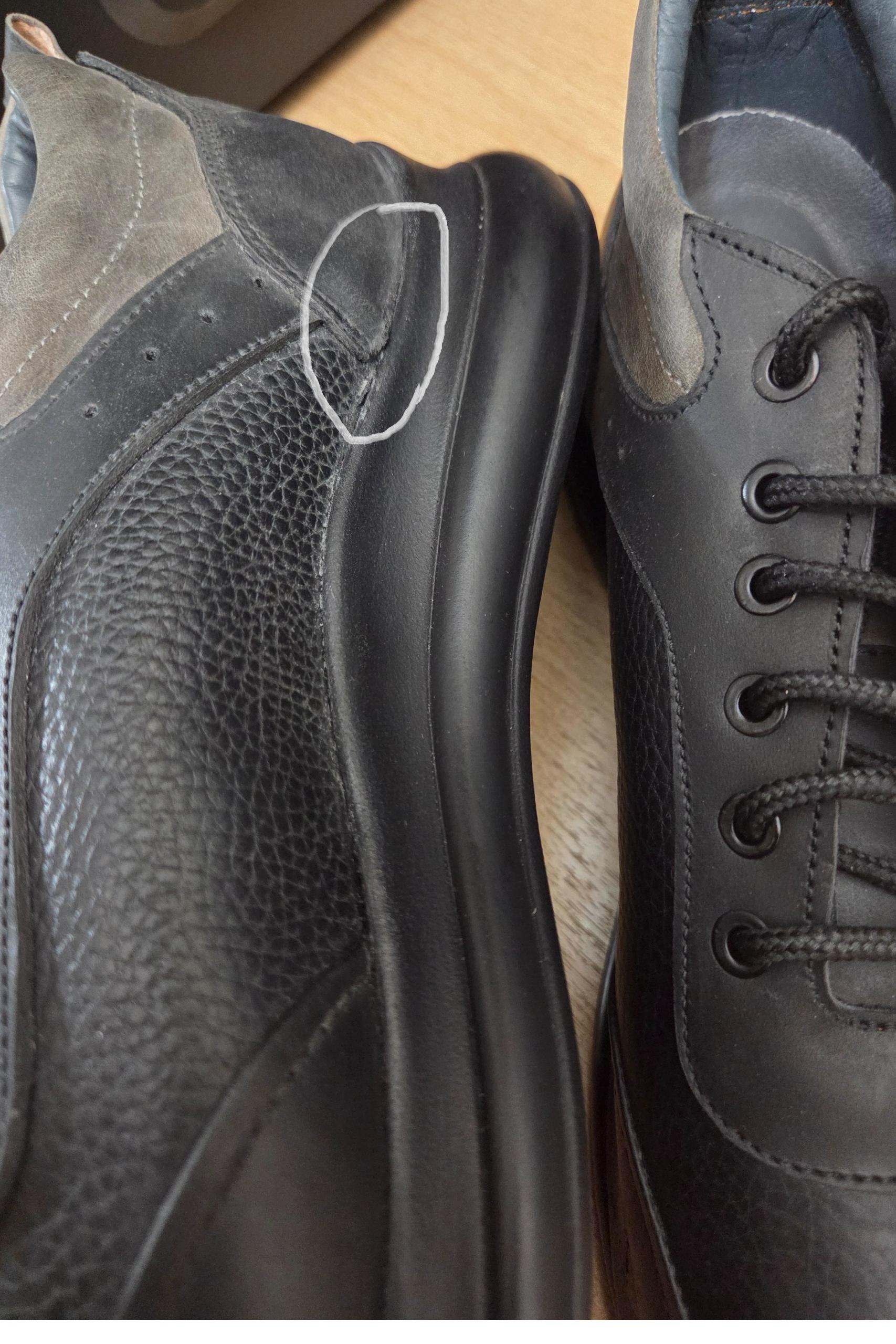 * این کفش طبق عکسها به دلیل بیرون زدگی چرم از زیره کفش (عکسهای 2 و 3) به همین دلیل در ایسام قرارداده شده است.