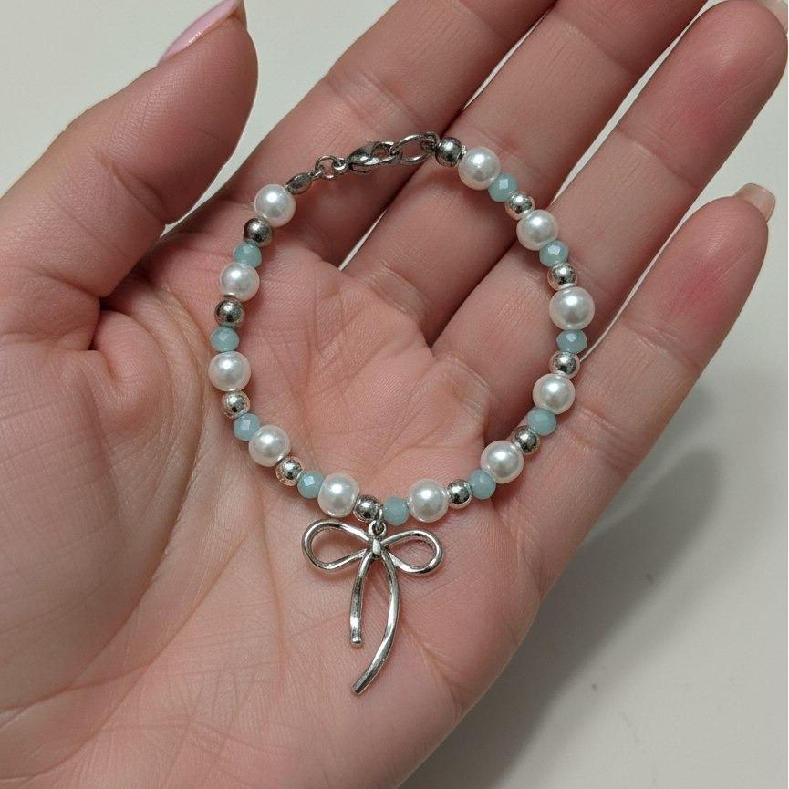 دسبند دستساز مروارید سنگی اتصالات و پلاک استیل