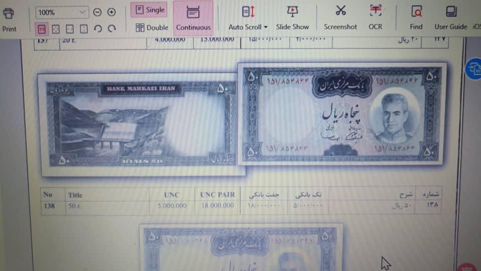 50 ریال محمدرضا پهلوی شماره در کتاب اسکناس 107