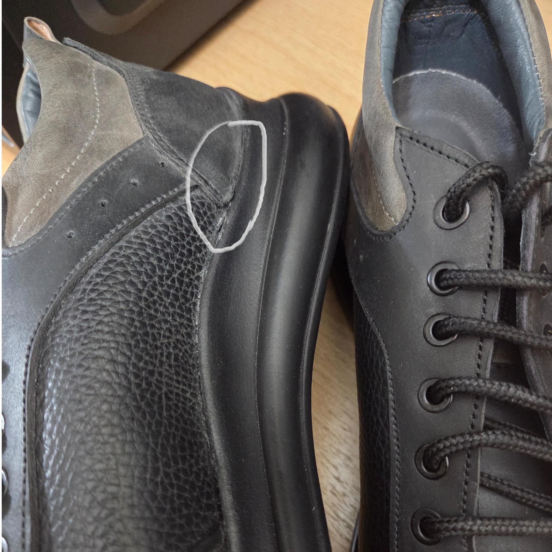 * این کفش طبق عکسها به دلیل بیرون زدگی چرم از زیره کفش (عکسهای 2 و 3) به همین دلیل در ایسام قرارداده شده است.
